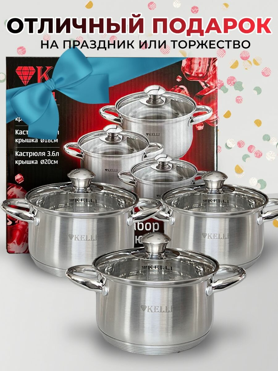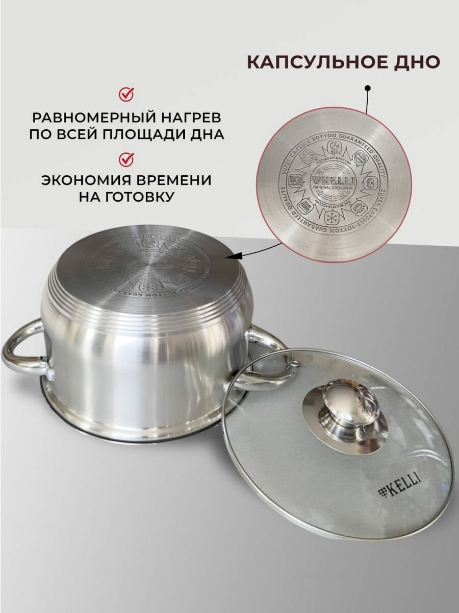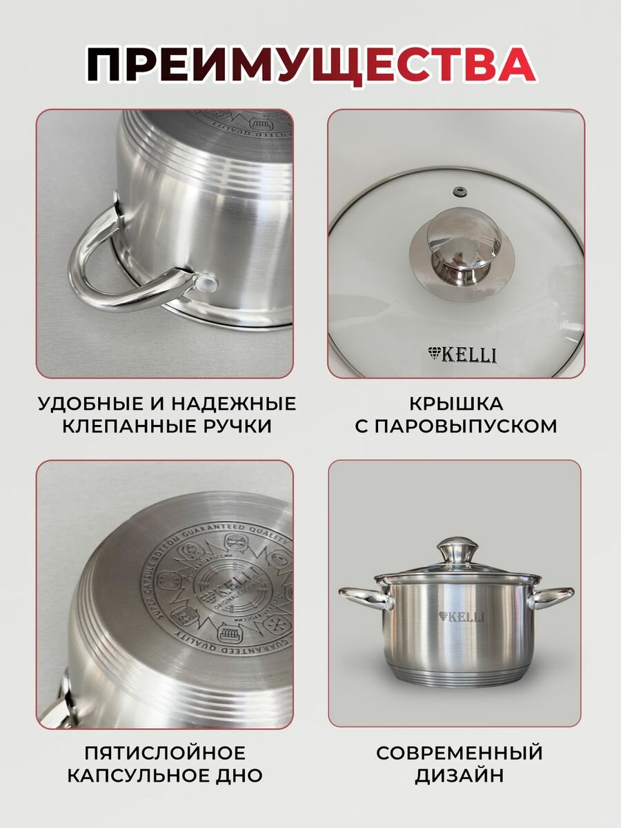 Набор кастрюль техно-вилка KELLI, KL-4201, с крышками, 3 шт, серебристый интересное: