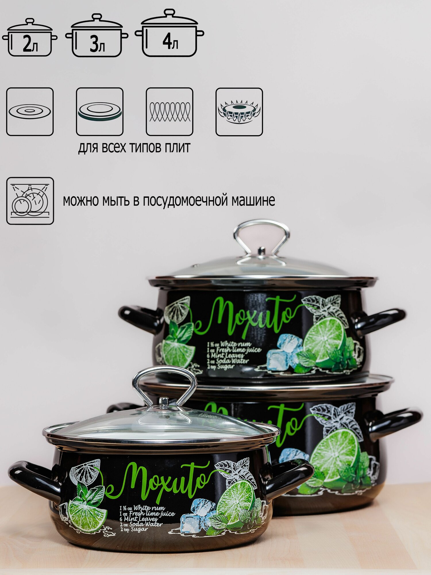 Набор кастрюль с крышками эмалированных 3 шт "Мохито-1-экстра стиль" интересное: