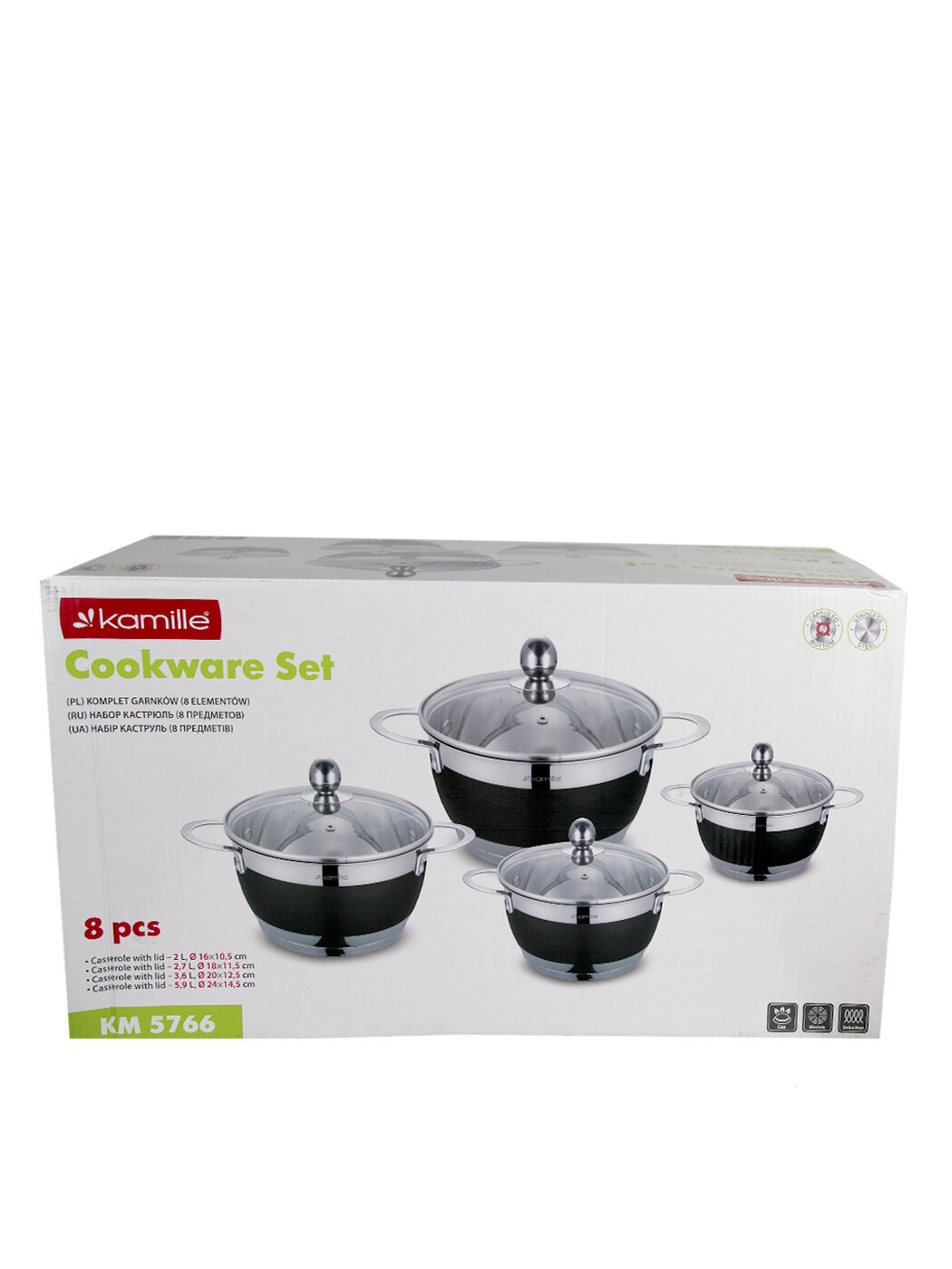 Купить Набор кастрюль 8 предметов 2 л; 2,7 л; 3,6 л; 5,9 л. Kamille KM 5766 из нержавеющей стали (серебристый)