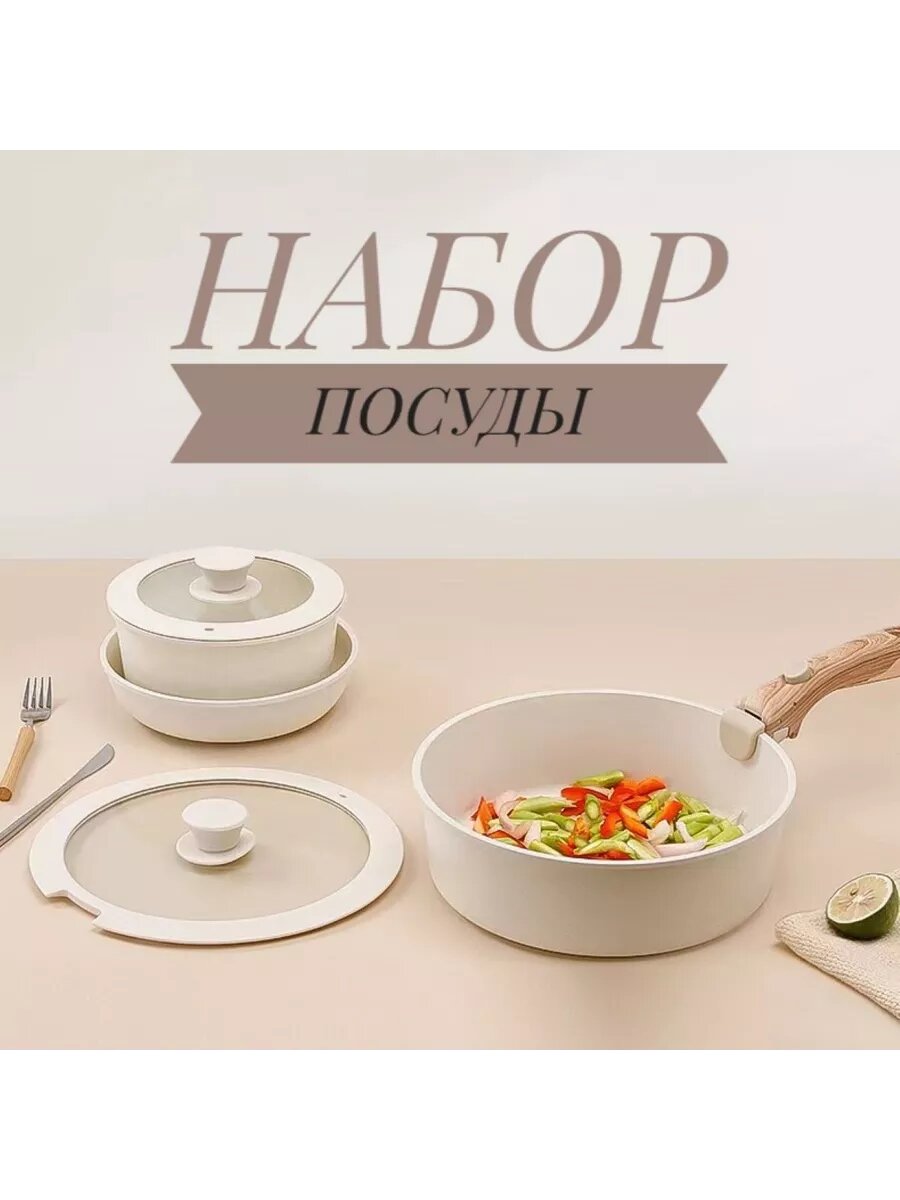 Набор посуды со съемной ручкой интересное: