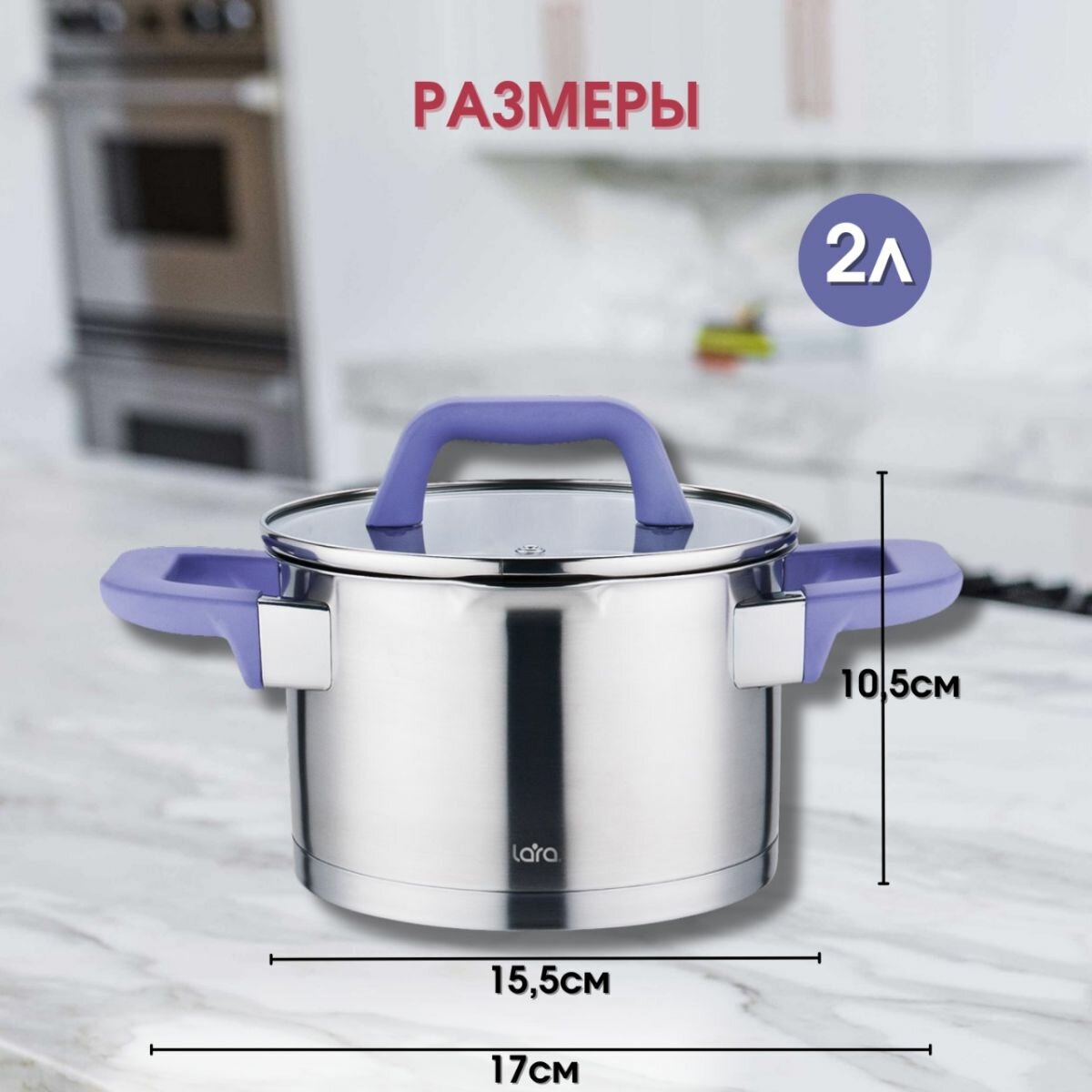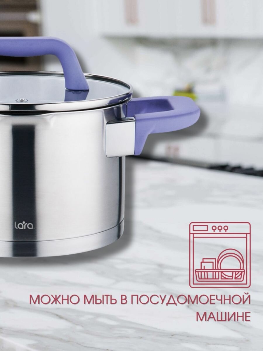 Набор посуды LARA ЛАВАНДА (кастрюли объемом 2+2,8+3,8л), нерж сталь, индукция интересное: