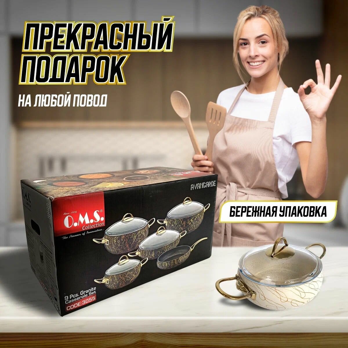 Набор посуды для приготовления OMS, 3037-Gd, ivori легкий, антипригарным покрытием, с крышками, 9 предметов