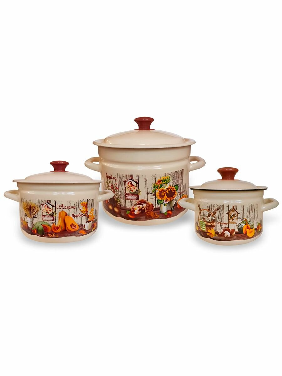 Купить "Набор кастрюль с крышками эмалированных 3 шт "Гарден" 2л/3л/4л.