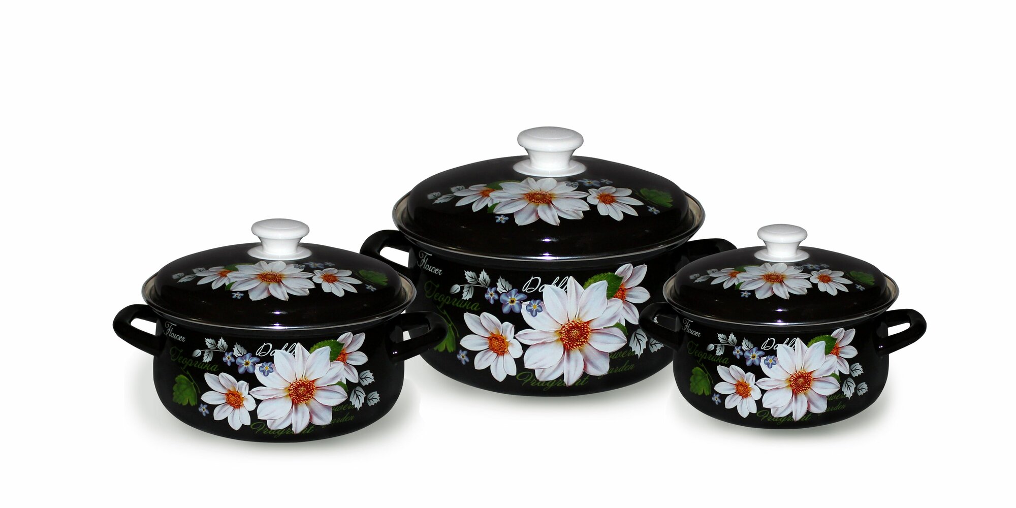 Набор кастрюль с крышками эмалированных 3 шт "Белые георгины" интересное: