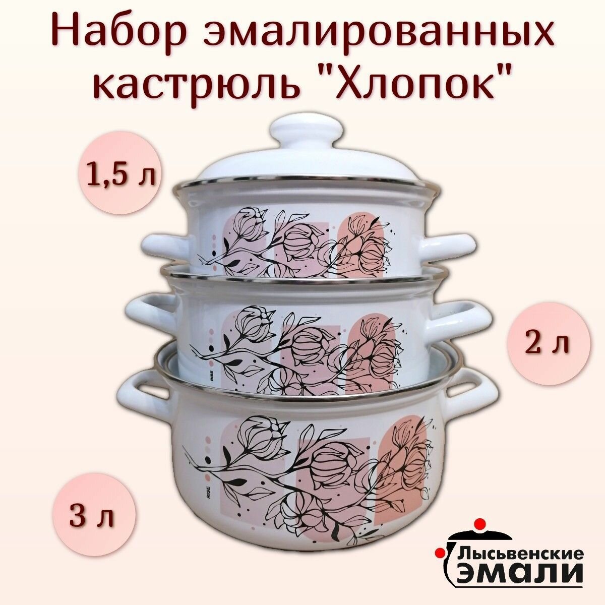 Купить Набор эмалированных кастрюль 124 С-124АП2/4 Хлопок, кастрюли 1,5/2/3л