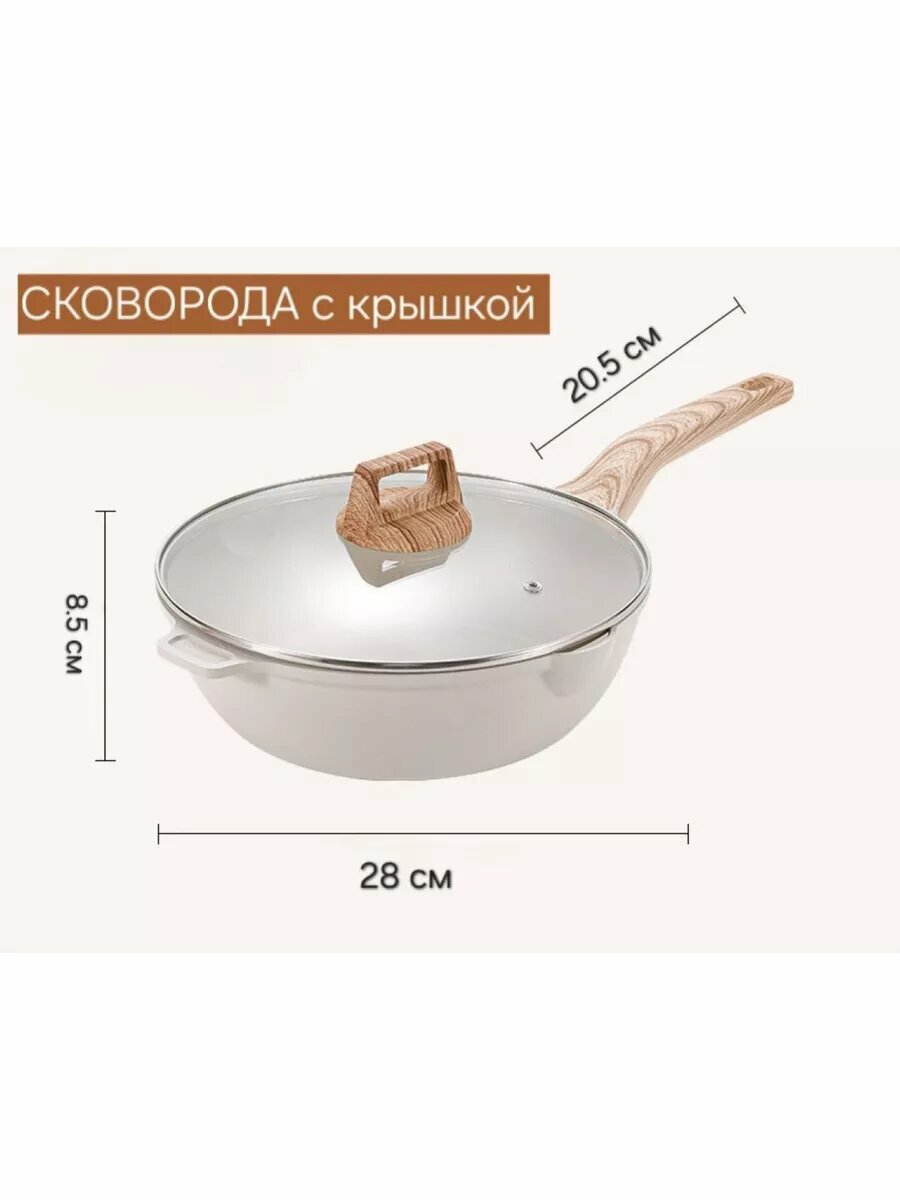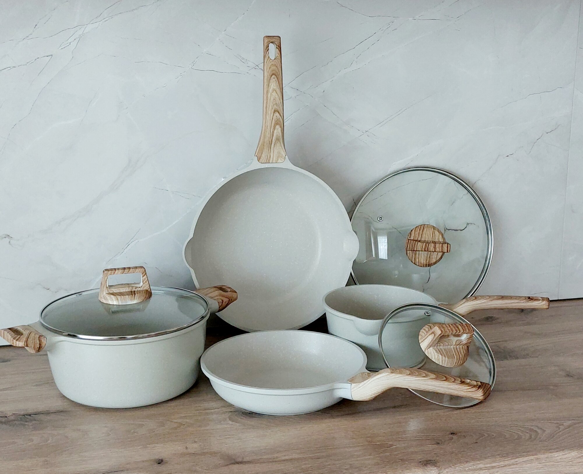 Набор посуды Cookware set, алюминий, антипригарное покрытие, с крышкой, зернистый светло-серый интересное: