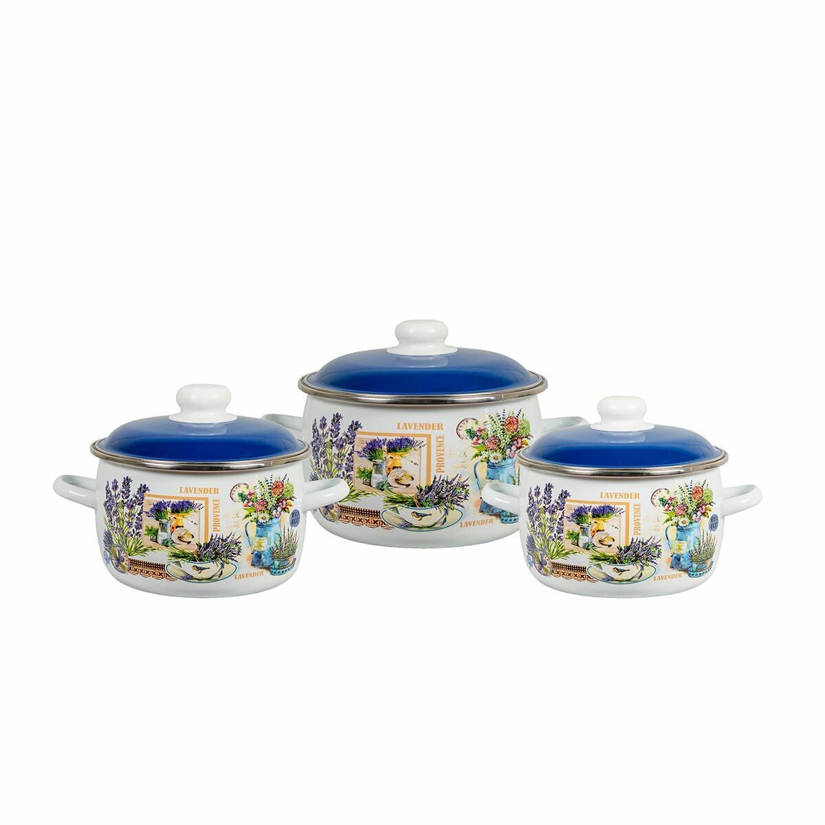 Купить Набор эмалированных кастрюль СтальЭмаль Горная лаванда, 6 предметов (2, 3, 5,5 л, крышки)