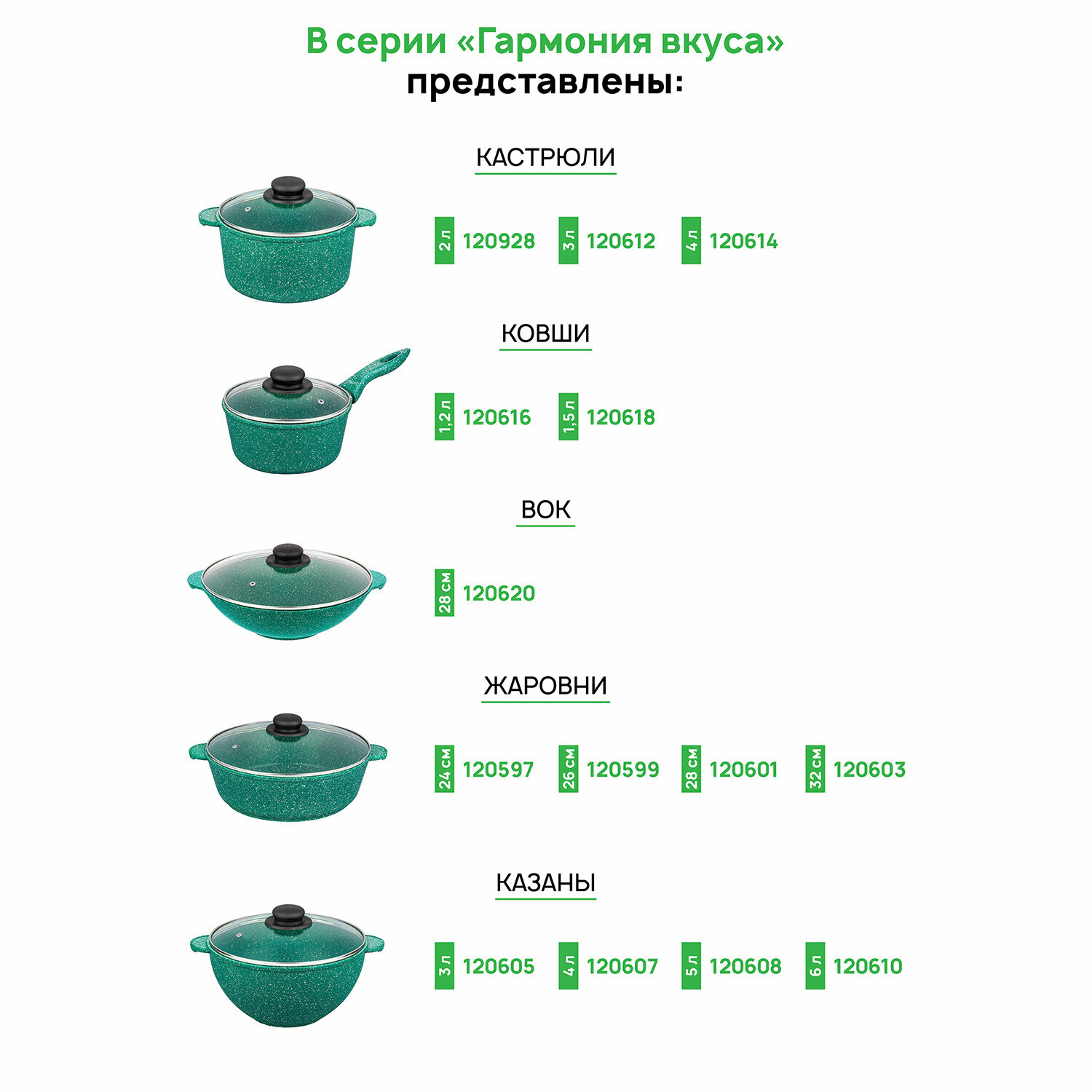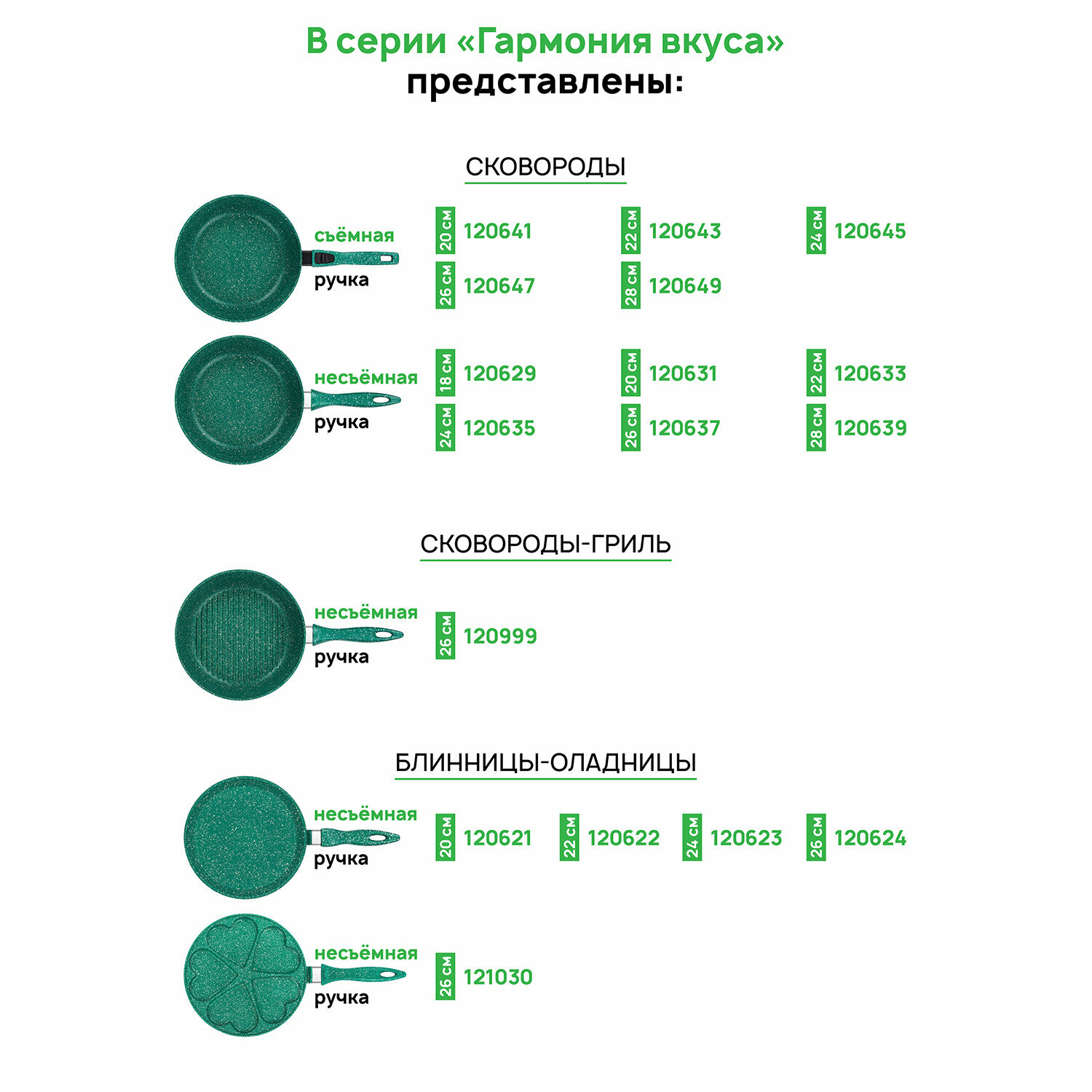 Набор 7 пр. Elan Gallery гармония Вкуса Изумруд Сковорода блинная 22 см, Сковороды 18 см, 20 см, 22 см, н/р, 3 крышки интересное: