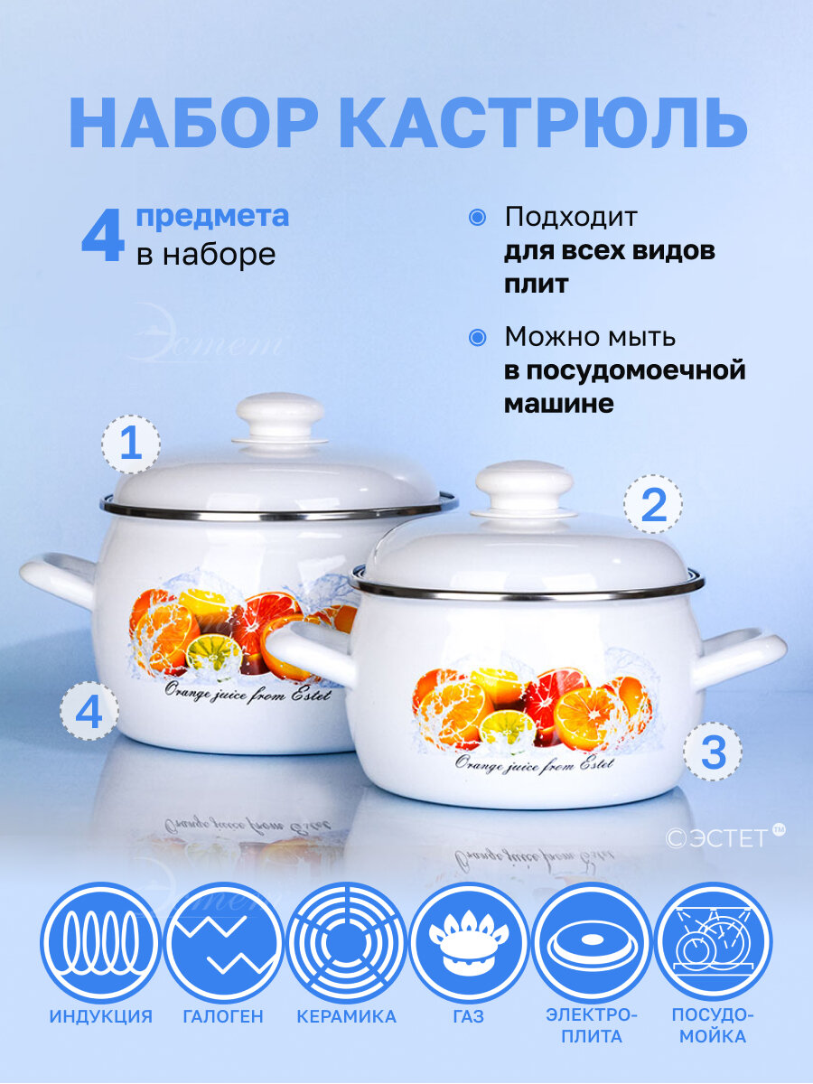 Кастрюля эмалированная с крышкой набор из 2-х 2,0 и 3,5 литра интересное: