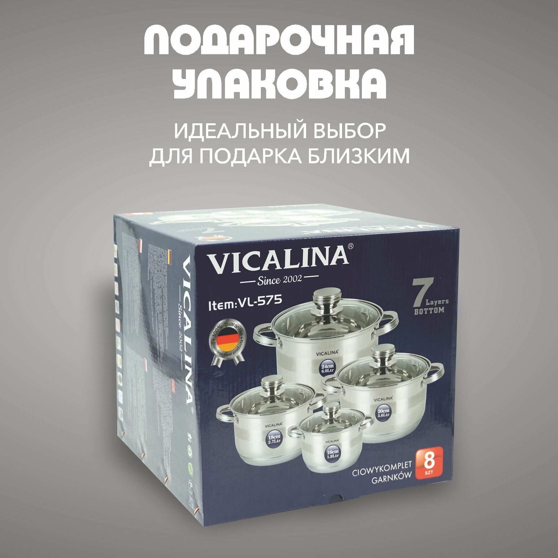 Купить Набор кастрюль Vicalina, нержавеющая сталь, мытье в посудомойке, 8 предметов
