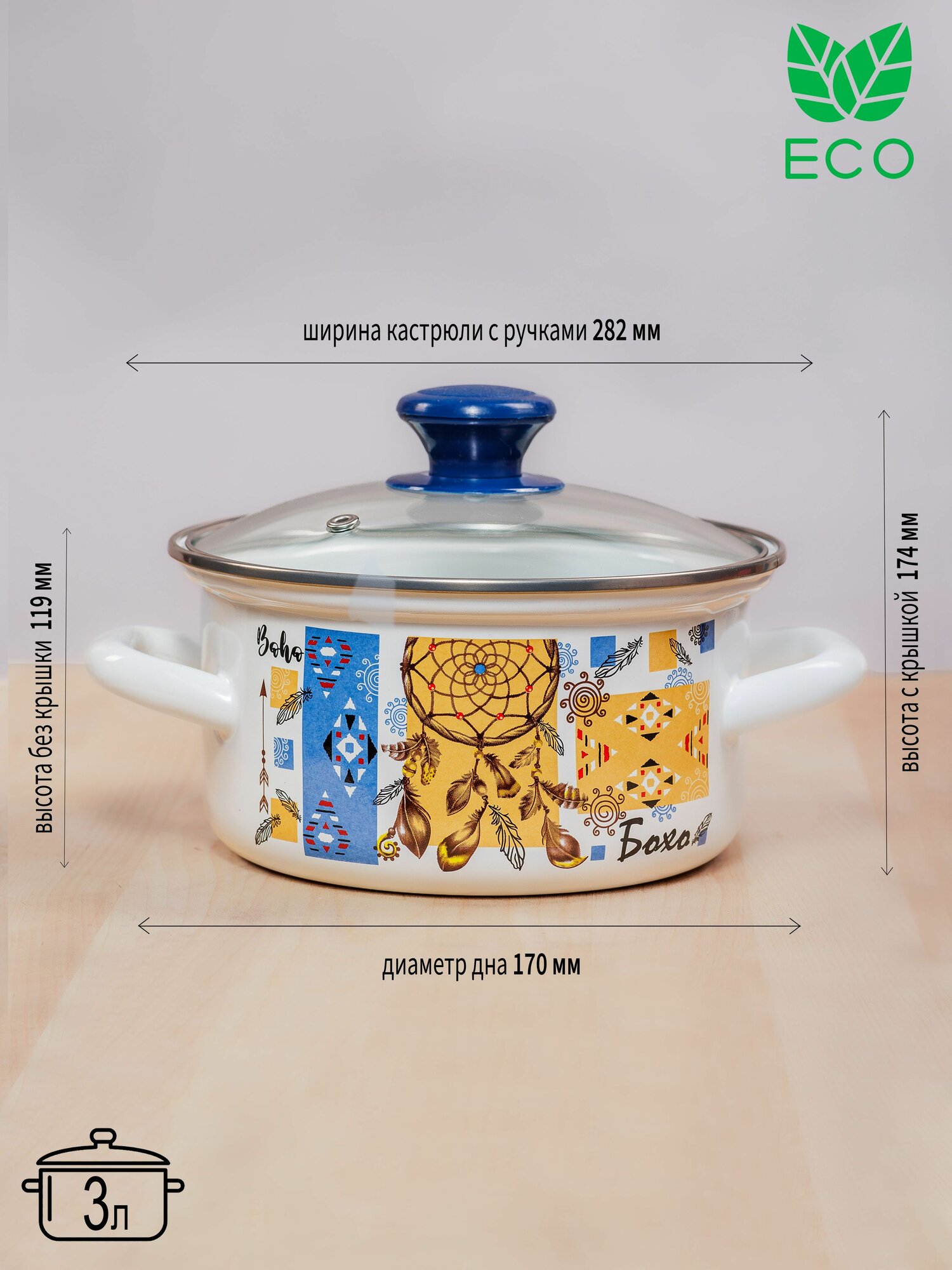 Набор кастрюль с крышками эмалированных 3 шт "Этно узор-1-экстра" интересное: