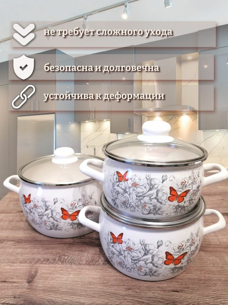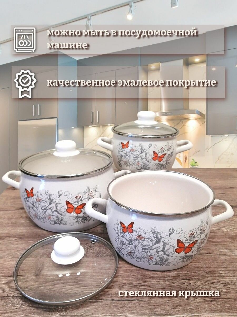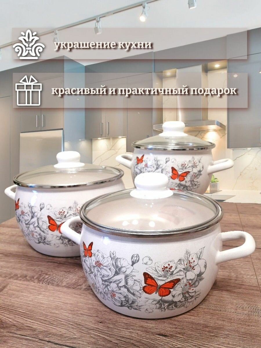 Набор эмалированных кастрюль со стеклянными крышками, Яблоневый цвет интересное: