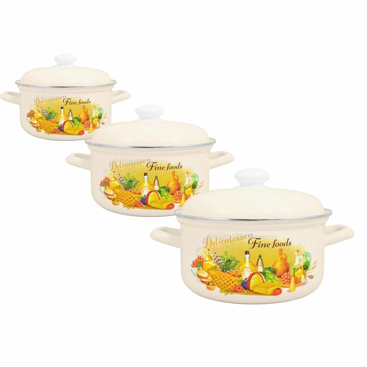 Набор кастрюль Итальянская кухня, набор кастрюль эмалированных 3, 2, 1,5л