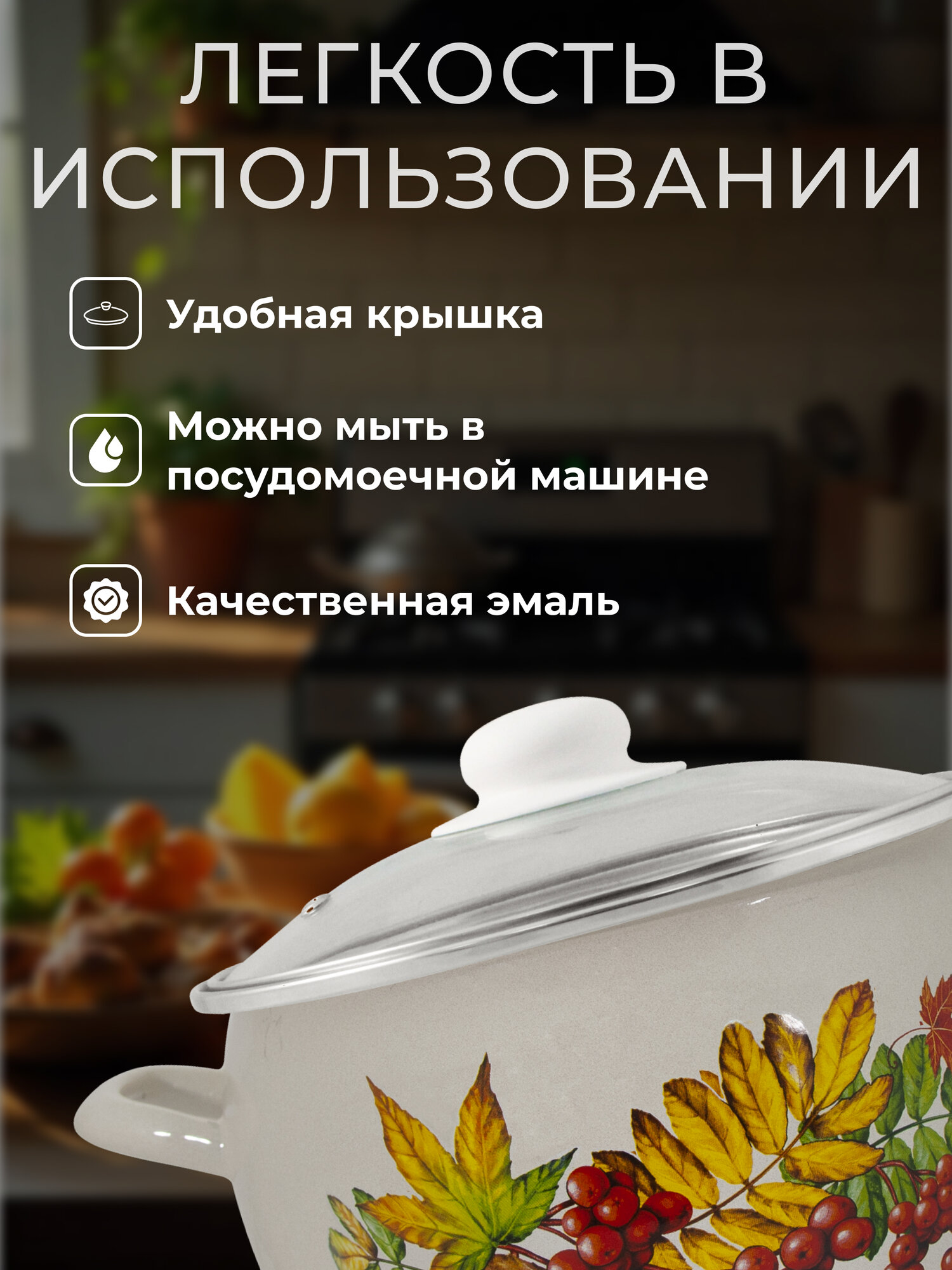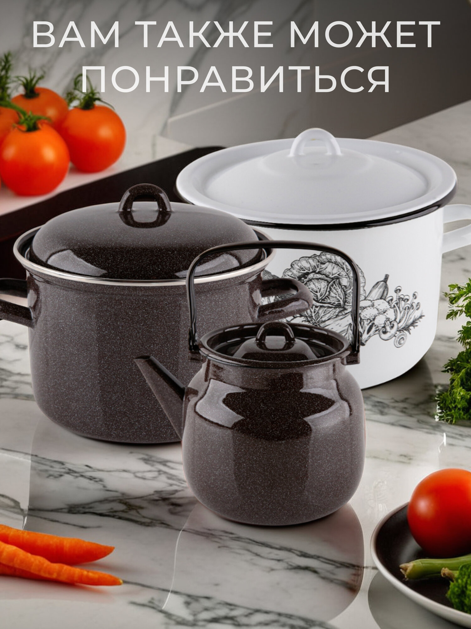 СохранитьНабор эмалированных кастрюль, набор кастрюль для индукционных плит 2 л, 3,5 л, 5л, 207 С-207САП2/4Жм Рябина интересное: