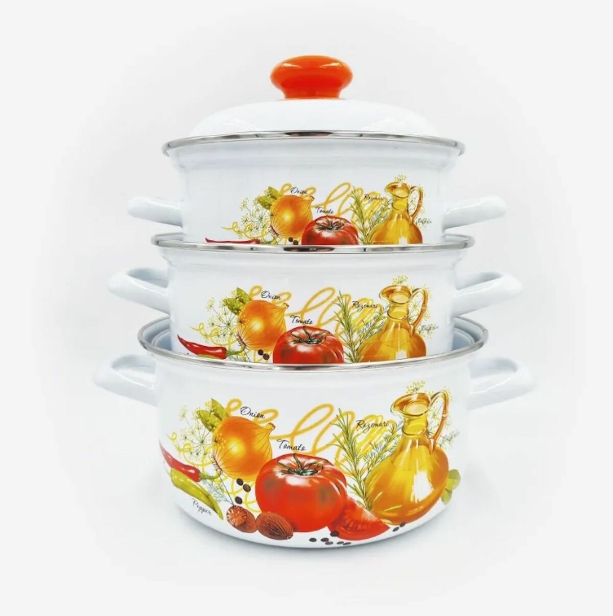 Купить Набор кастрюль Итальянская кухня, набор кастрюль эмалированных 3, 2, 1,5л