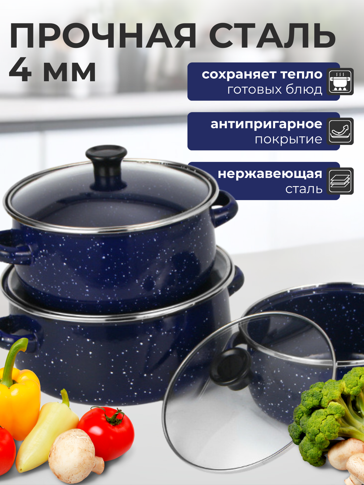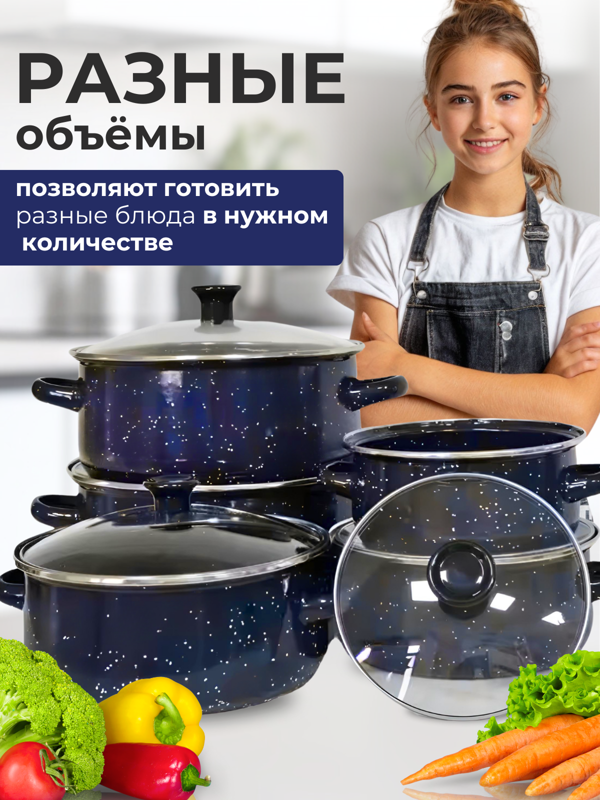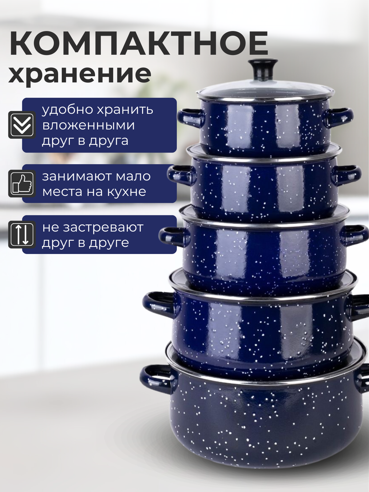 Набор кастрюль MYIDEA, из нержавеющей стали, с антипригарным покрытием, для всех типов плит, 5шт, синий интересное: