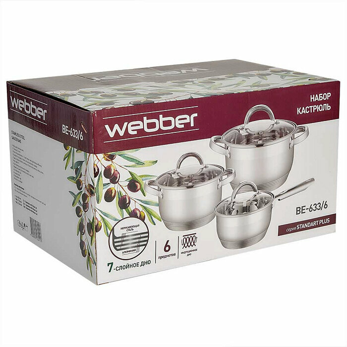 Набор посуды Webber BE-633/6 Standart Plus, 6 предметов, для всех типов плит, нержавеющая сталь интересное: