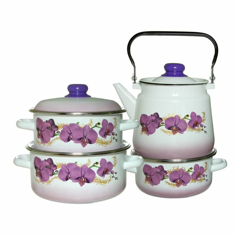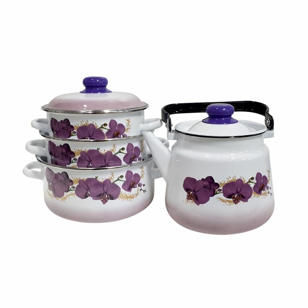 Набор эмалированной посуды Орхидея 5KB311M, кастрюли 2/3/4л, чайник 3,5л, белоснежный интересное: