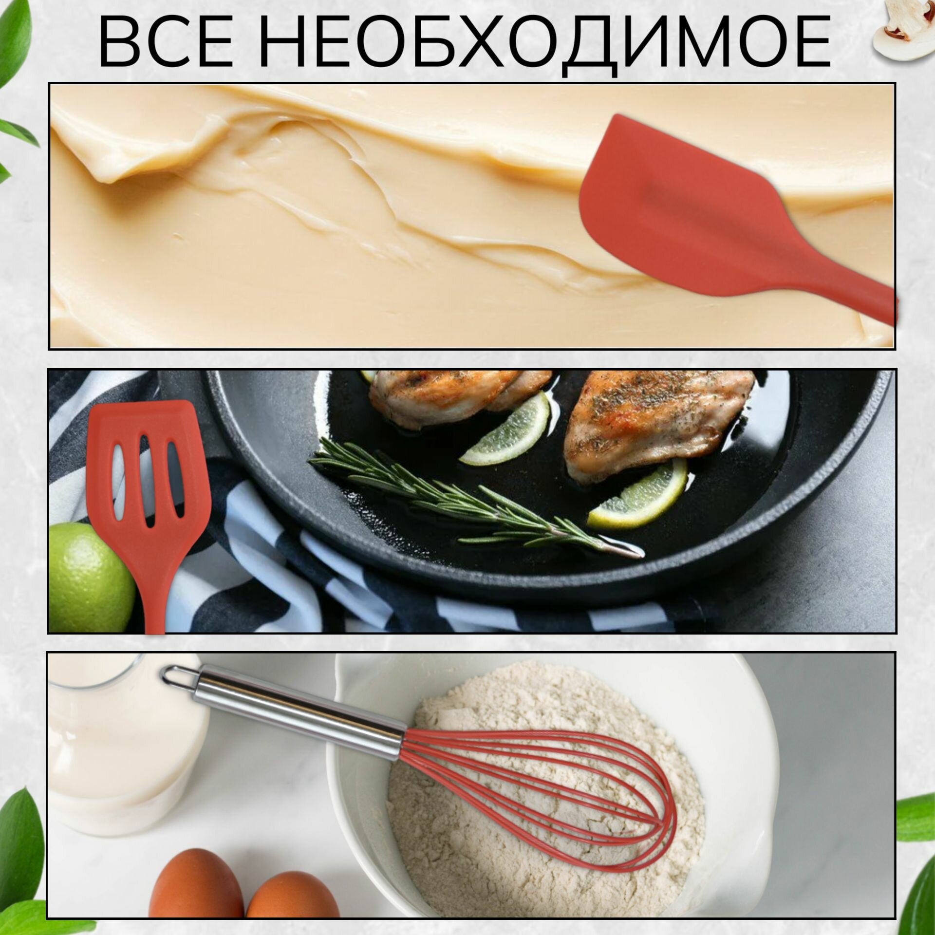 Набор кухонных принадлежностей для готовки силиконовый, 5 предметов, красный интересное: