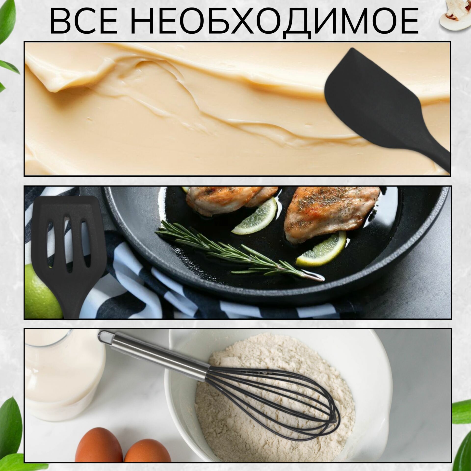Набор кухонных принадлежностей для готовки силиконовый, 5 предметов, черный интересное: