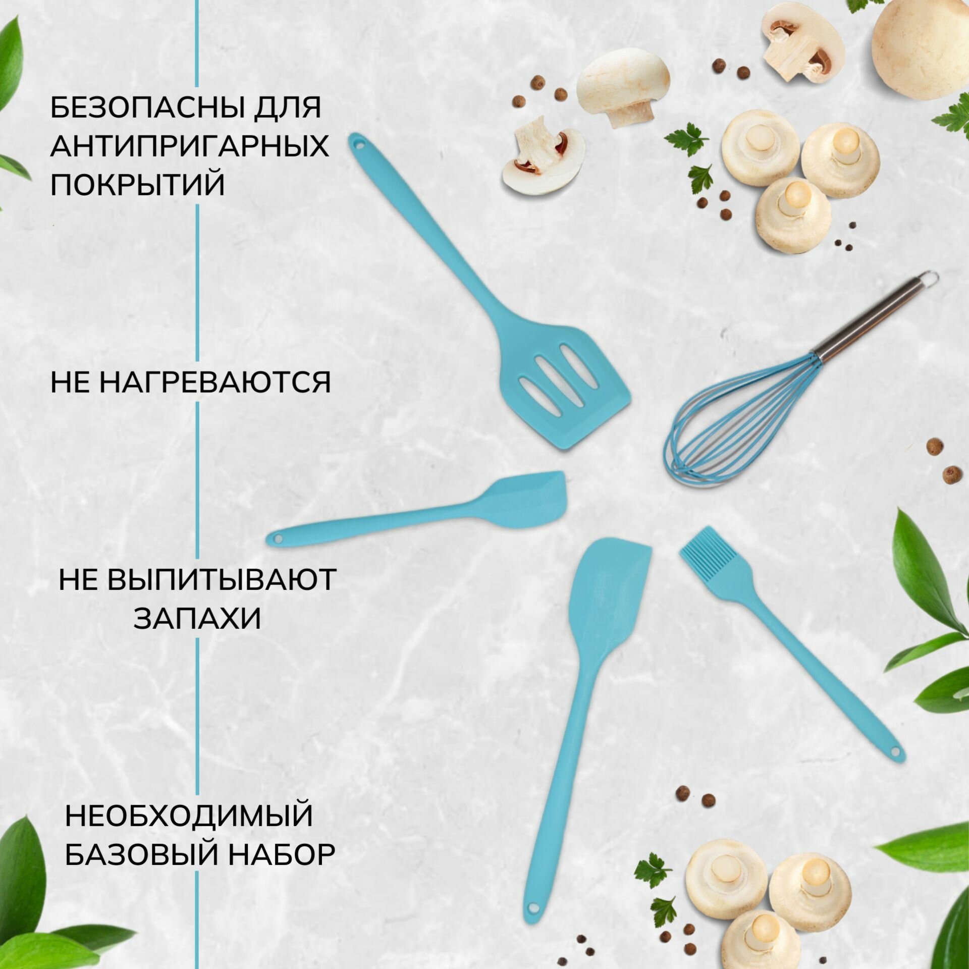 Набор кухонных принадлежностей для готовки силиконовый, 5 предметов, голубой интересное: