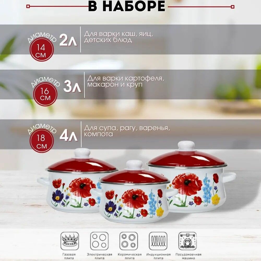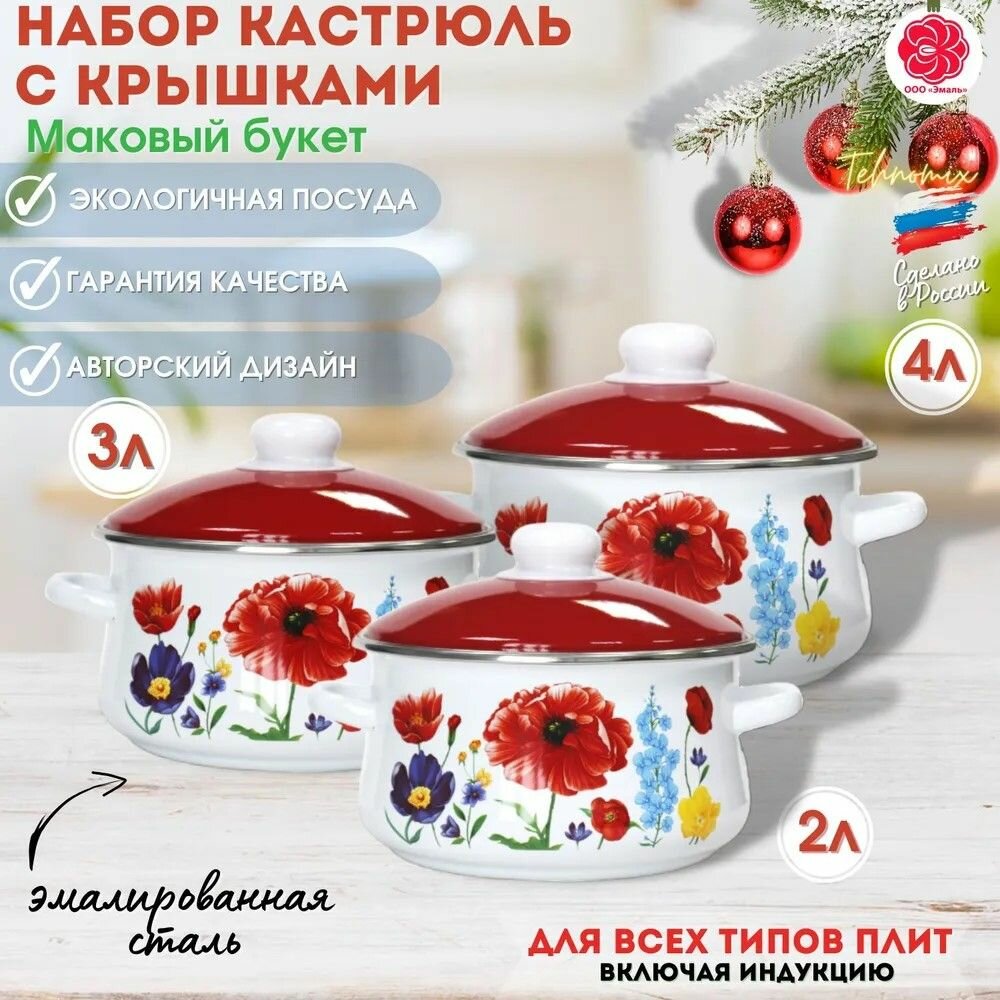 Набор кастрюль Жостово, кастрюли 2/4/5,5л, 1С408 черный