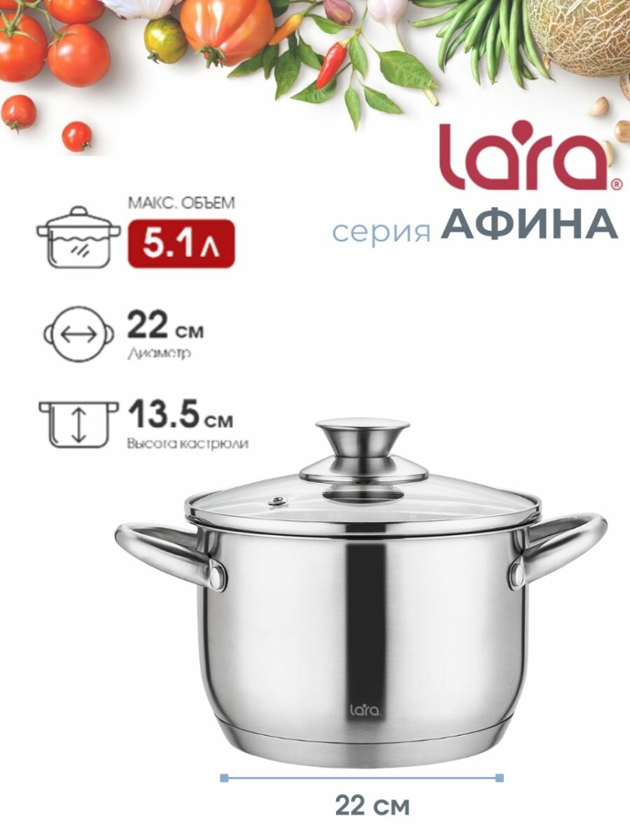 Набор посуды LARA АФИНА (кастрюли объемом 2,1+3,9+5,1л), нержавеющая сталь, индукция интересное: