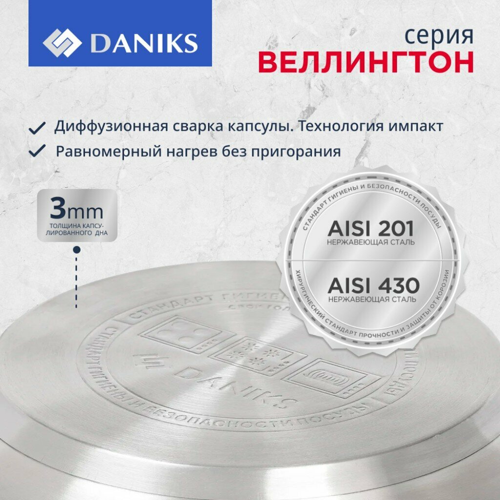 СохранитьНабор посуды нержавеющая сталь, 6 предметов, кастрюли 2, 2.8, 3.8 л, индукция, Daniks, Веллингтон, GS-01415-6SE интересное: