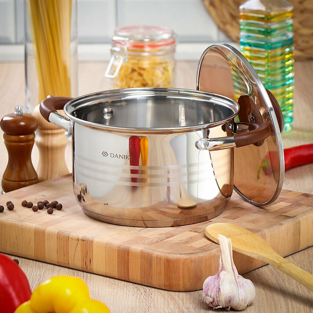 Набор посуды нержавеющая сталь, 6 предметов, кастрюли 3.4, 5.8 л, ковш 1.8 л, индукция, Daniks, Бонн, GS-01319-6PC