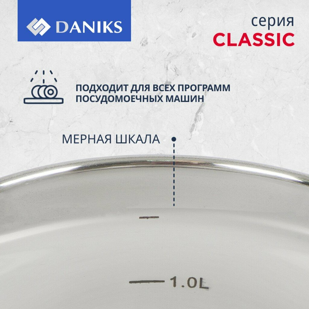 Набор посуды нержавеющая сталь, 6 предметов, кастрюли 3.4, 5.8 л, ковш 1.8 л, индукция, Daniks, Бонн, GS-01319-6PC