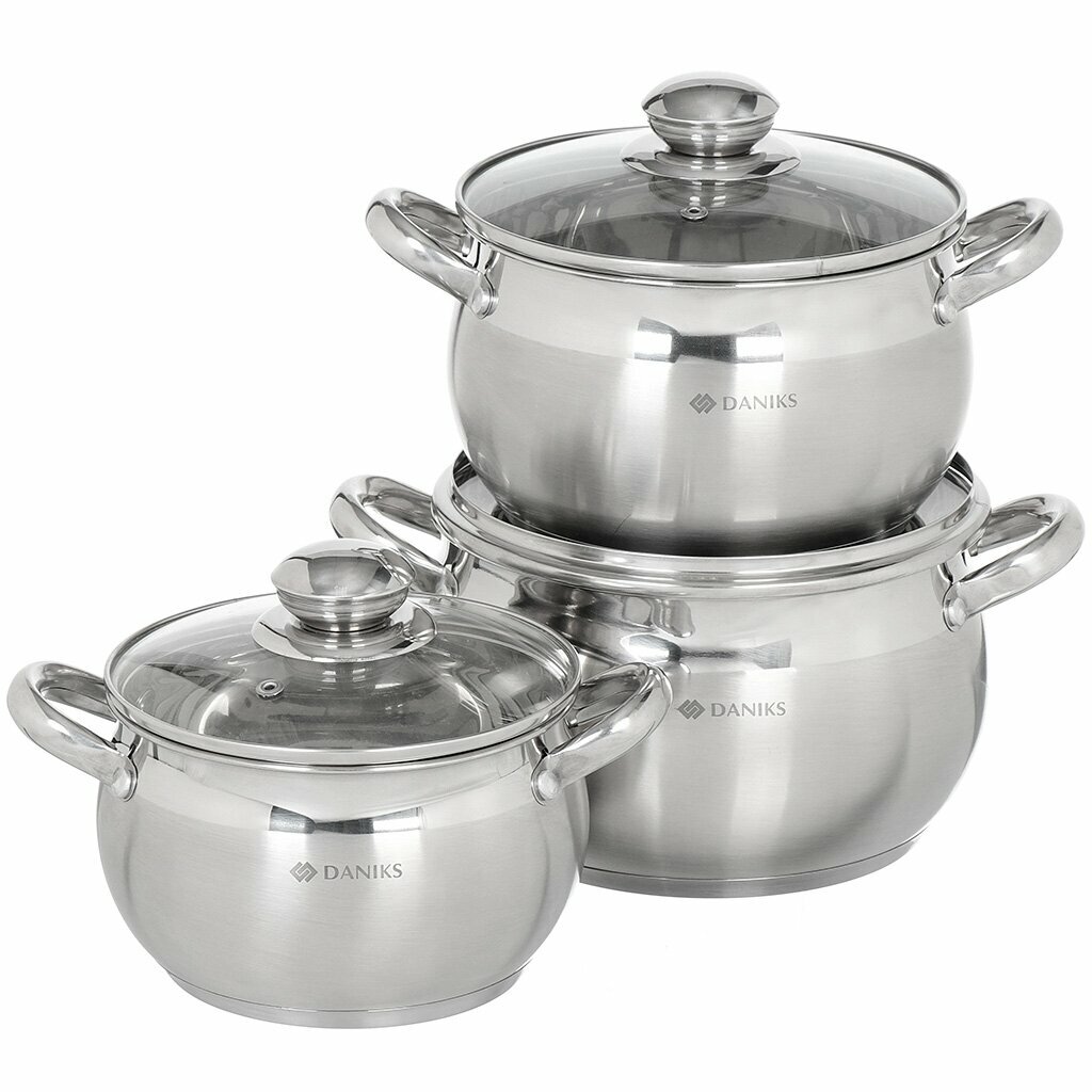 Купить Набор посуды нержавеющая сталь, 6 предметов, кастрюли 1.9,2.9,3.9 л, индукция, Daniks, Классика, SD-6