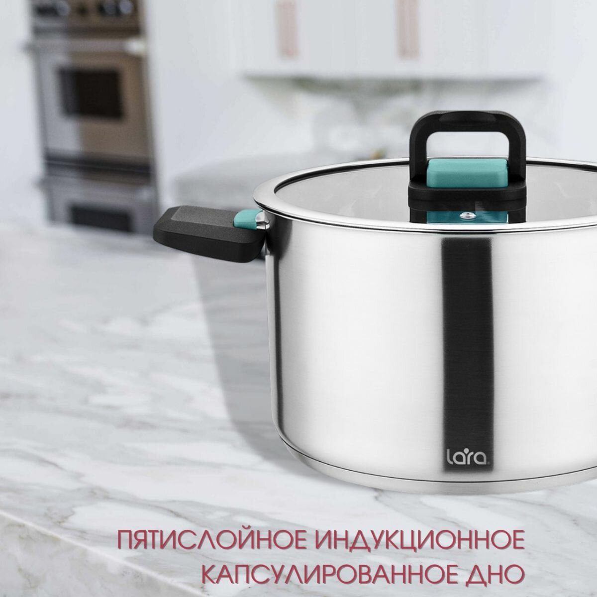 Набор посуды LARA ИЗУМРУД (кастрюли объемом 2л+3,8л+6,4л), нержавеющая сталь, складные ручки, для всех видов плит интересное: