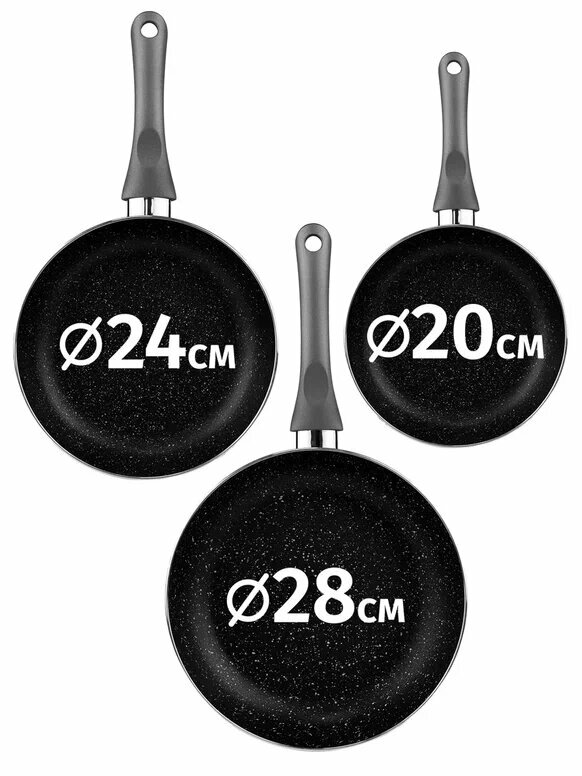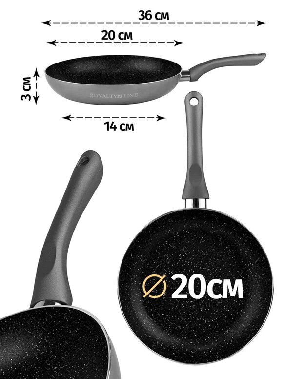 Набор сковородок Royalty Line, алюминий, антипригарное покрытие, 20/24/28 см, серый интересное: