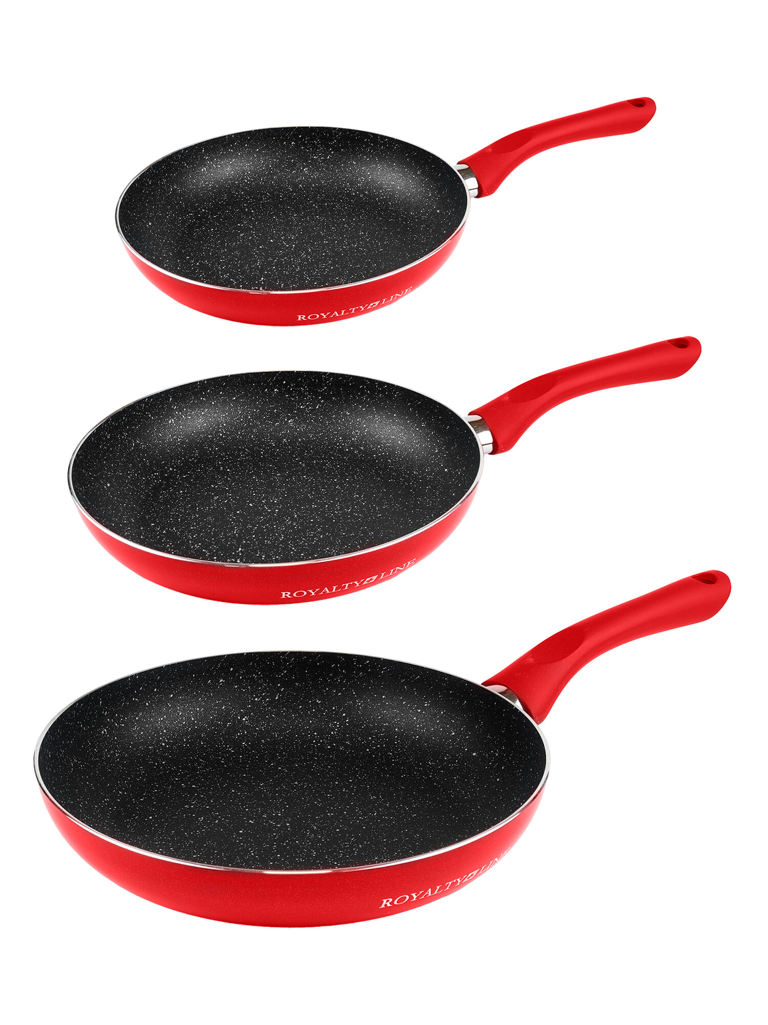 Купить Набор сковород от Royalty Line. Диаметры: 20 см, 24см, 28см. Цвет красный.