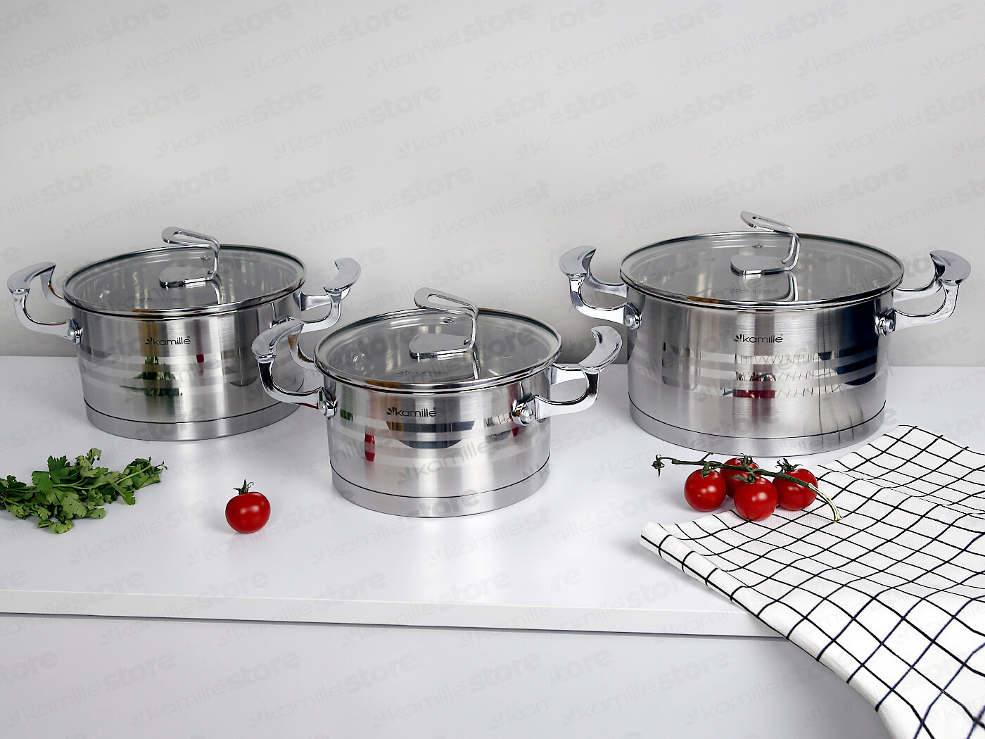 Купить Набор кастрюль 6 предметов 1,7 л; 2,4 л; 3,1 л. Kamille KM 5861 из нержавеющей стали (серебристый)