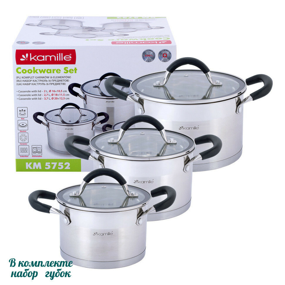Купить Набор кастрюль Kamille 6 предметов (2л, 2.7л, 3.7л) нерж. сталь 924472