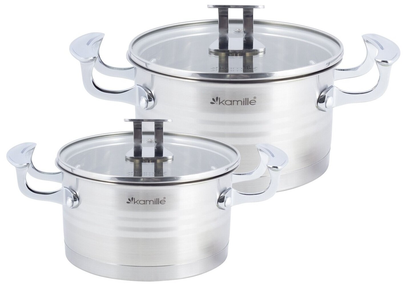 Набор кастрюль 4 предмета 1,7 л; 2,4 л. Kamille KM 5860 из нержавеющей стали (серебристый)