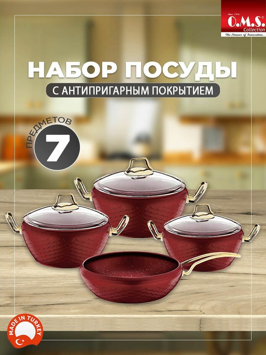 Набор посуды O.M.S Collection, алюминий, 7 предметов, антипригарное покрытие, Турция