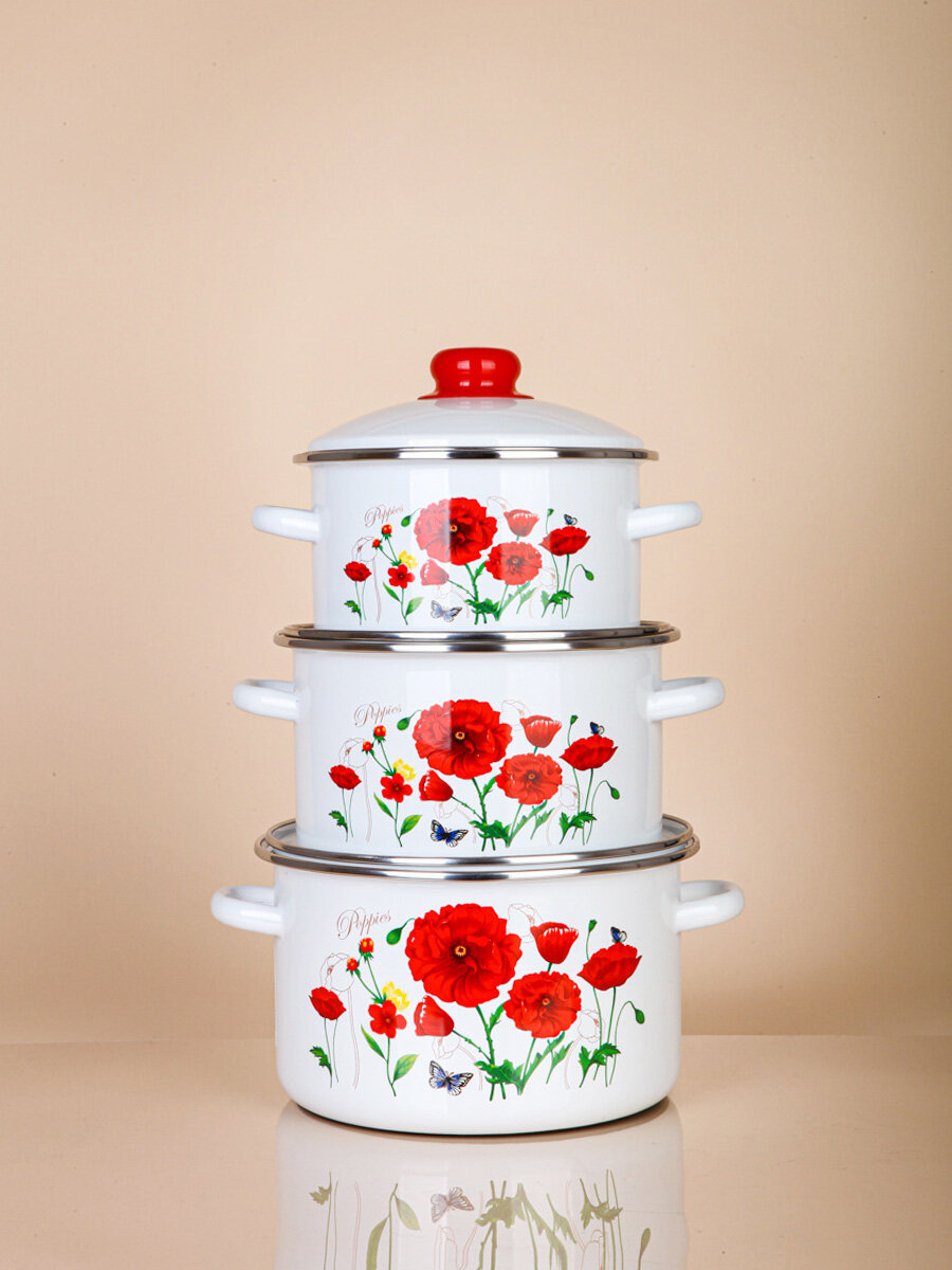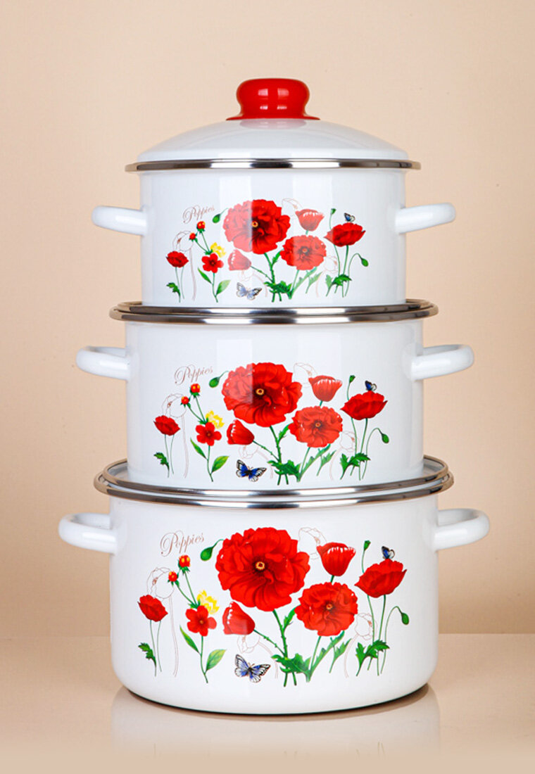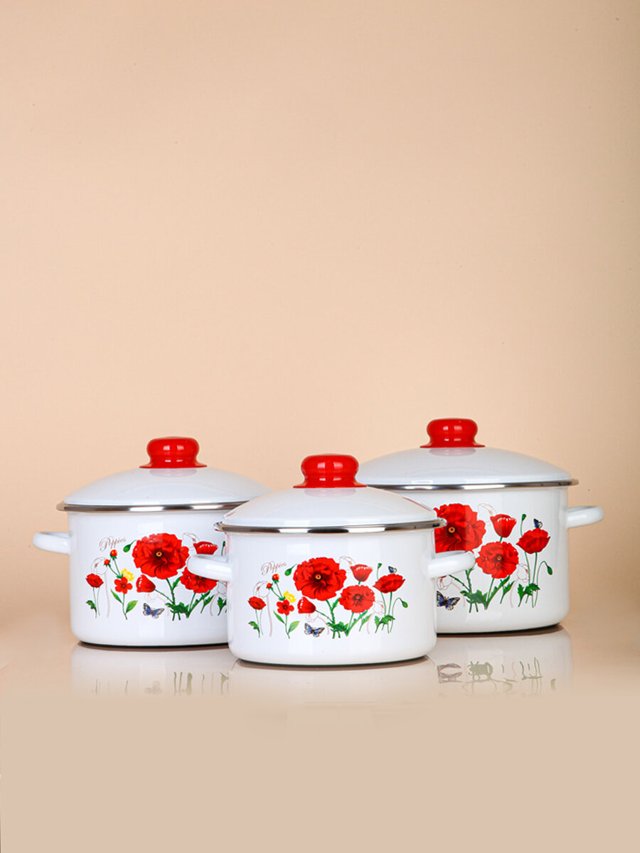 Кастрюля эмалированная с крышкой набор из 3-х 2,0, 3,0 и 4,0 литра интересное: