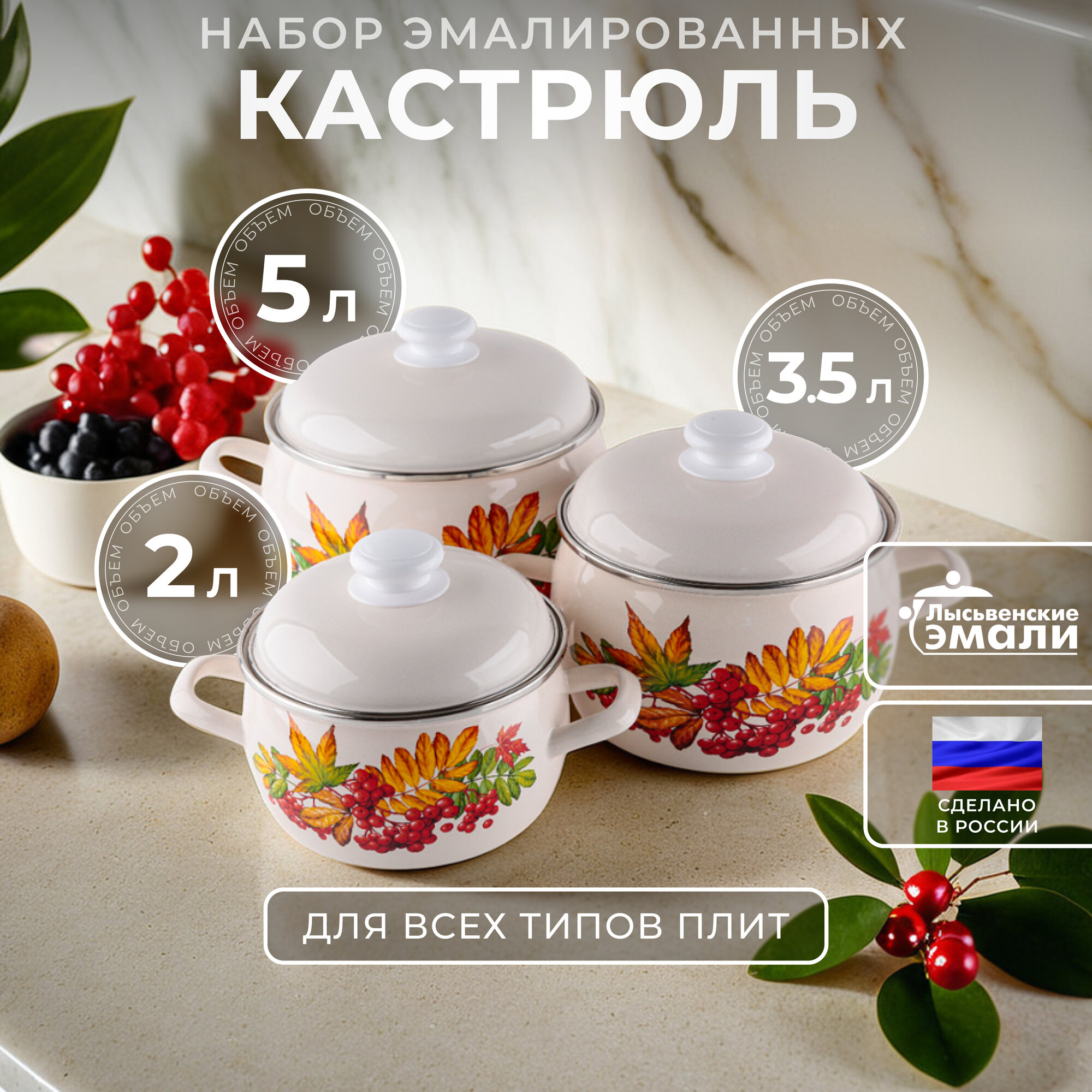 Купить Набор кастрюль Рябина Лысьвенские эмали эмалированные 2,0, 3,5, 5,0 л