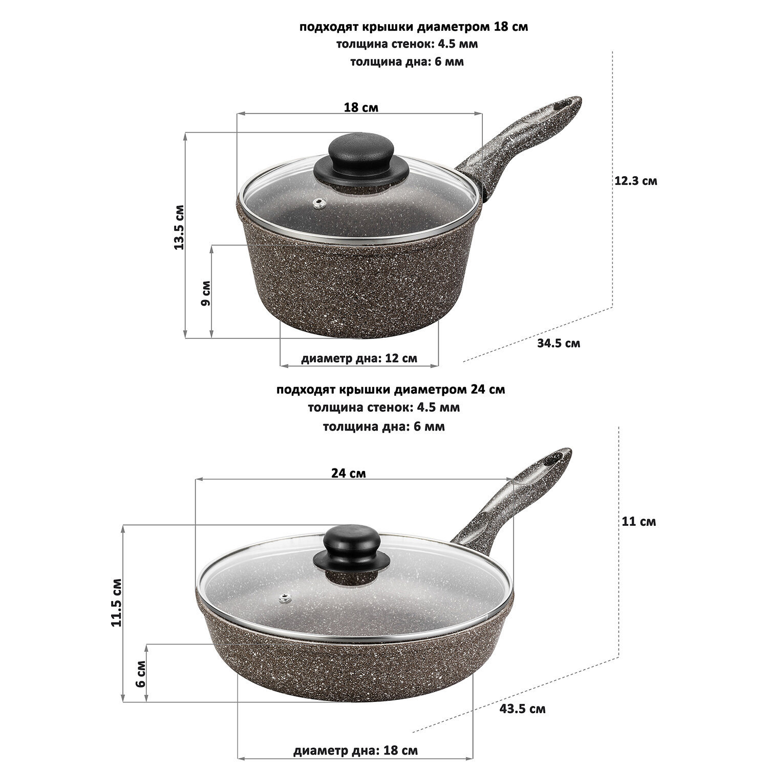 Набор 4 пр. Elan Gallery гармония вкуса Коричневый опал Кастрюля 3 л, ковш 1,5 л, сковорода 24 см, сковорода 20 см интересное:
