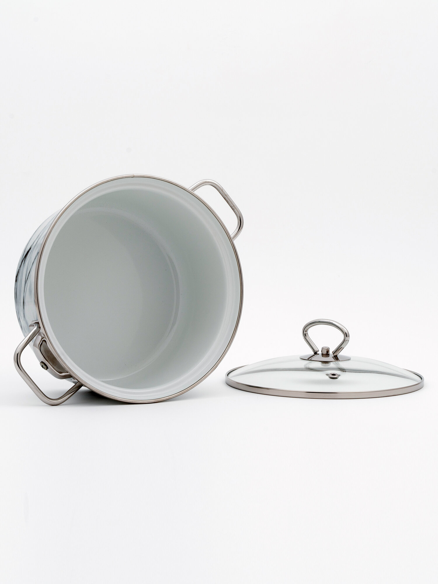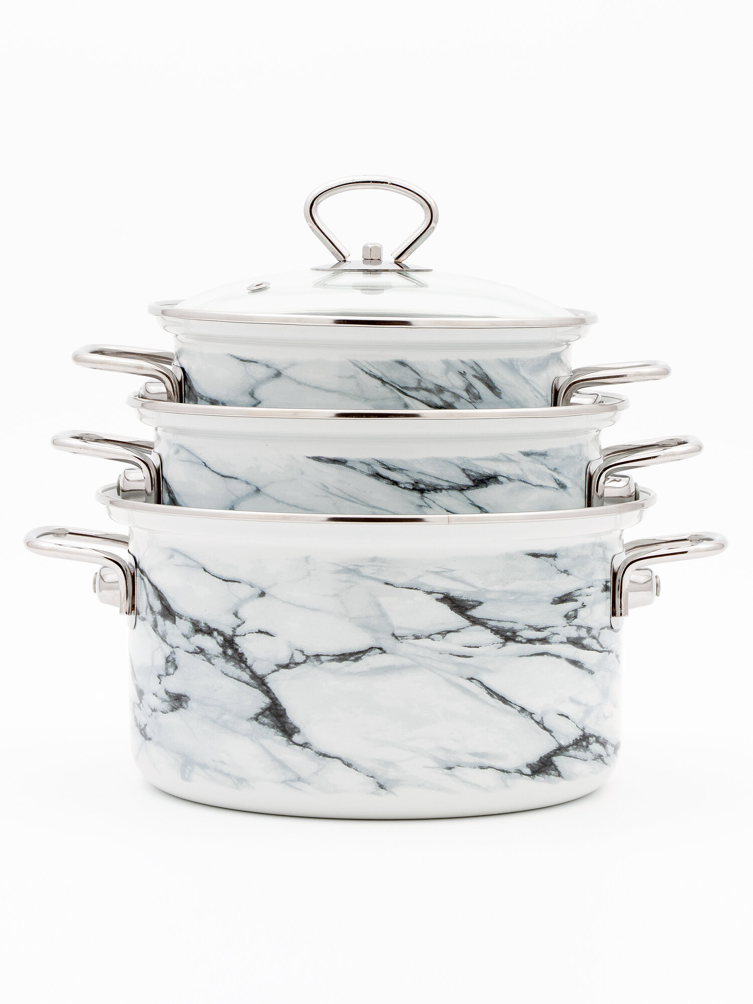 Набор кастрюль с крышками эмалированных 3 шт "Белый мрамор-1-Элит" интересное:
