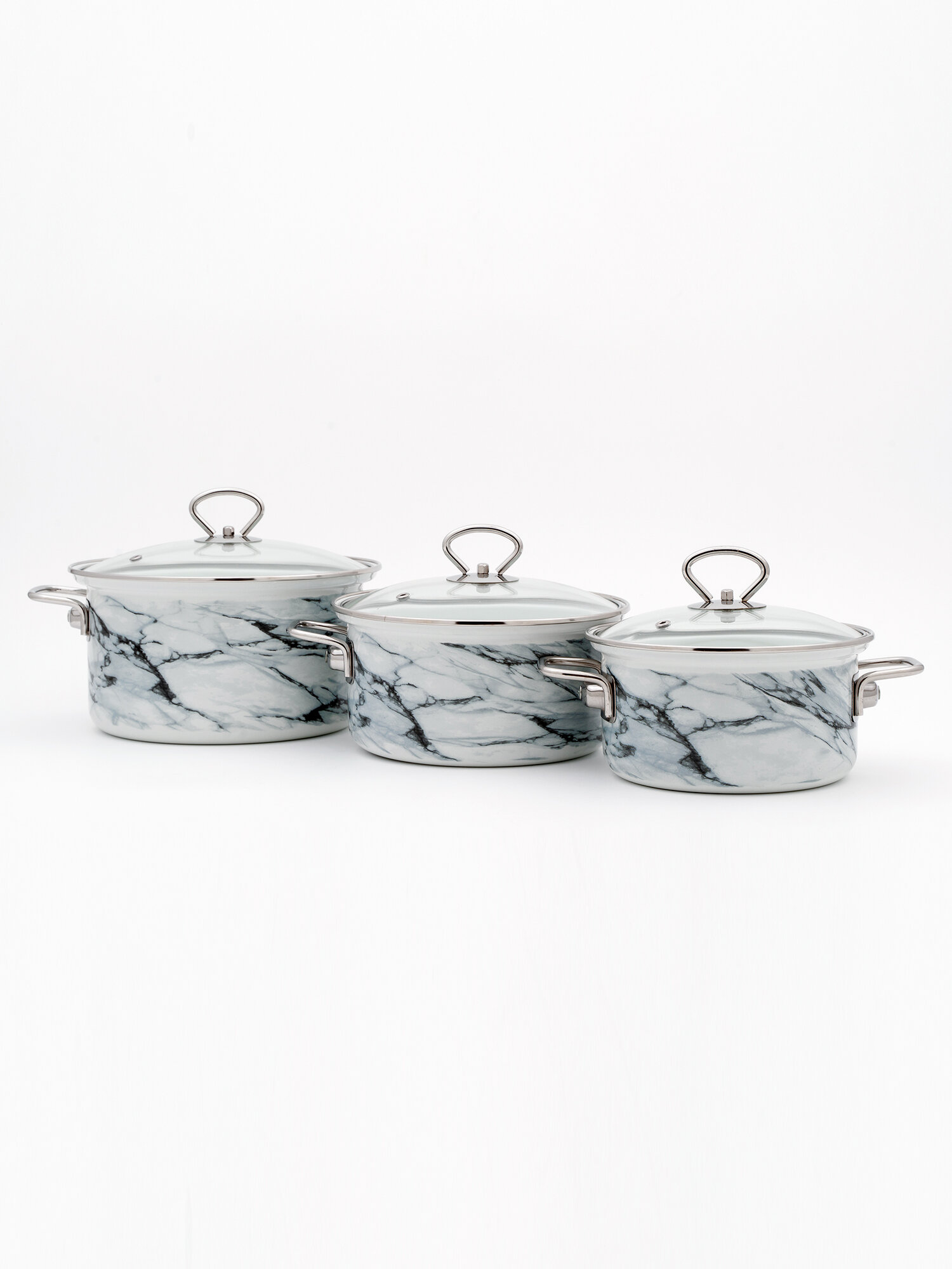 Купить Набор кастрюль с крышками эмалированных 3 шт "Белый мрамор-1-Элит"