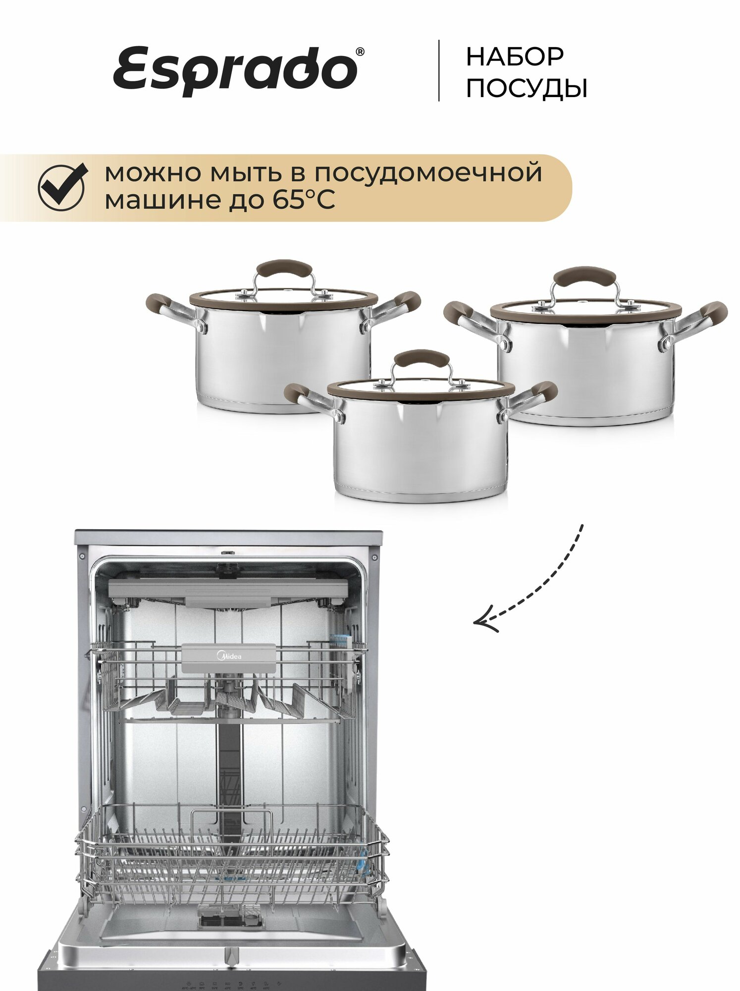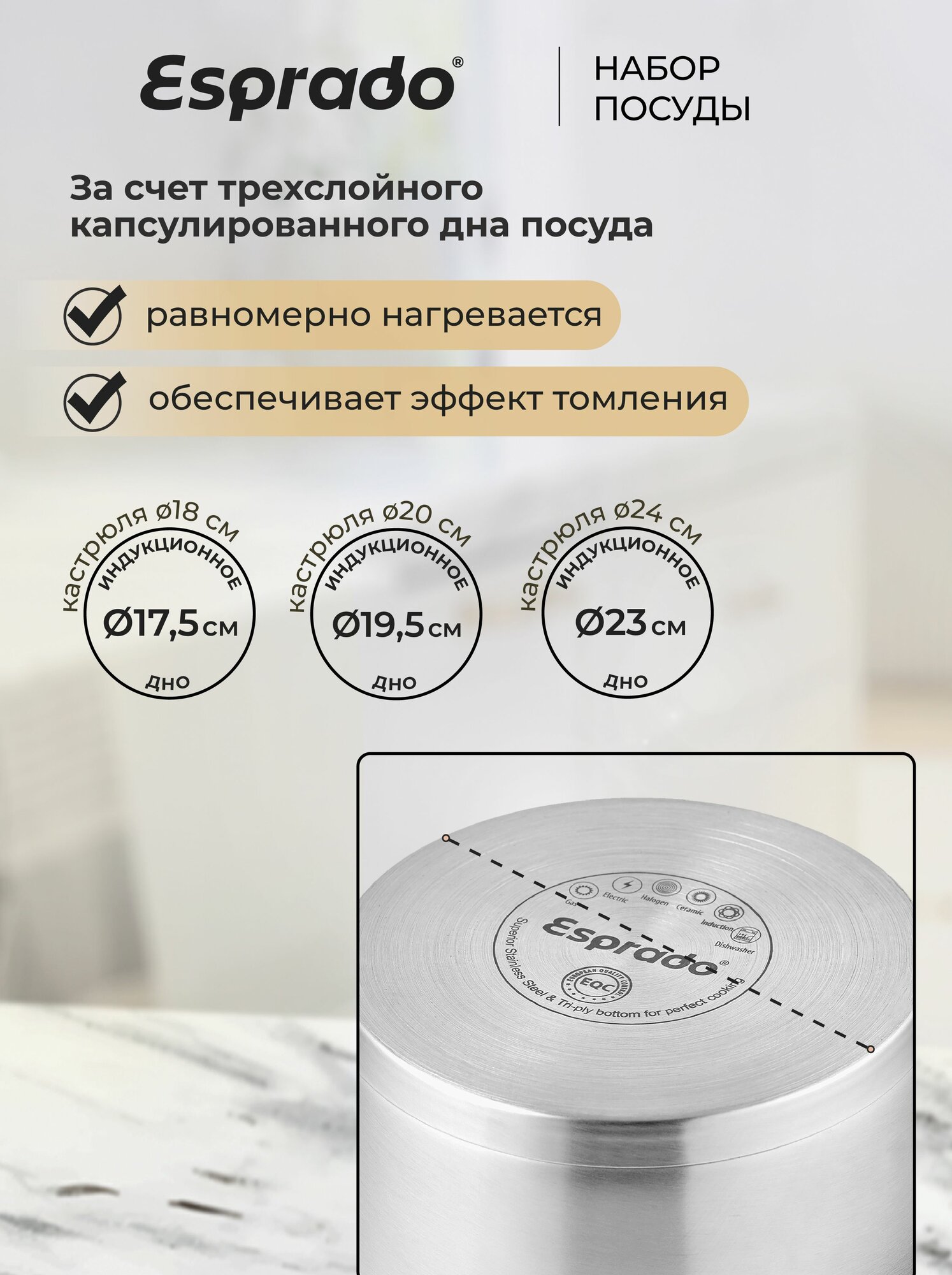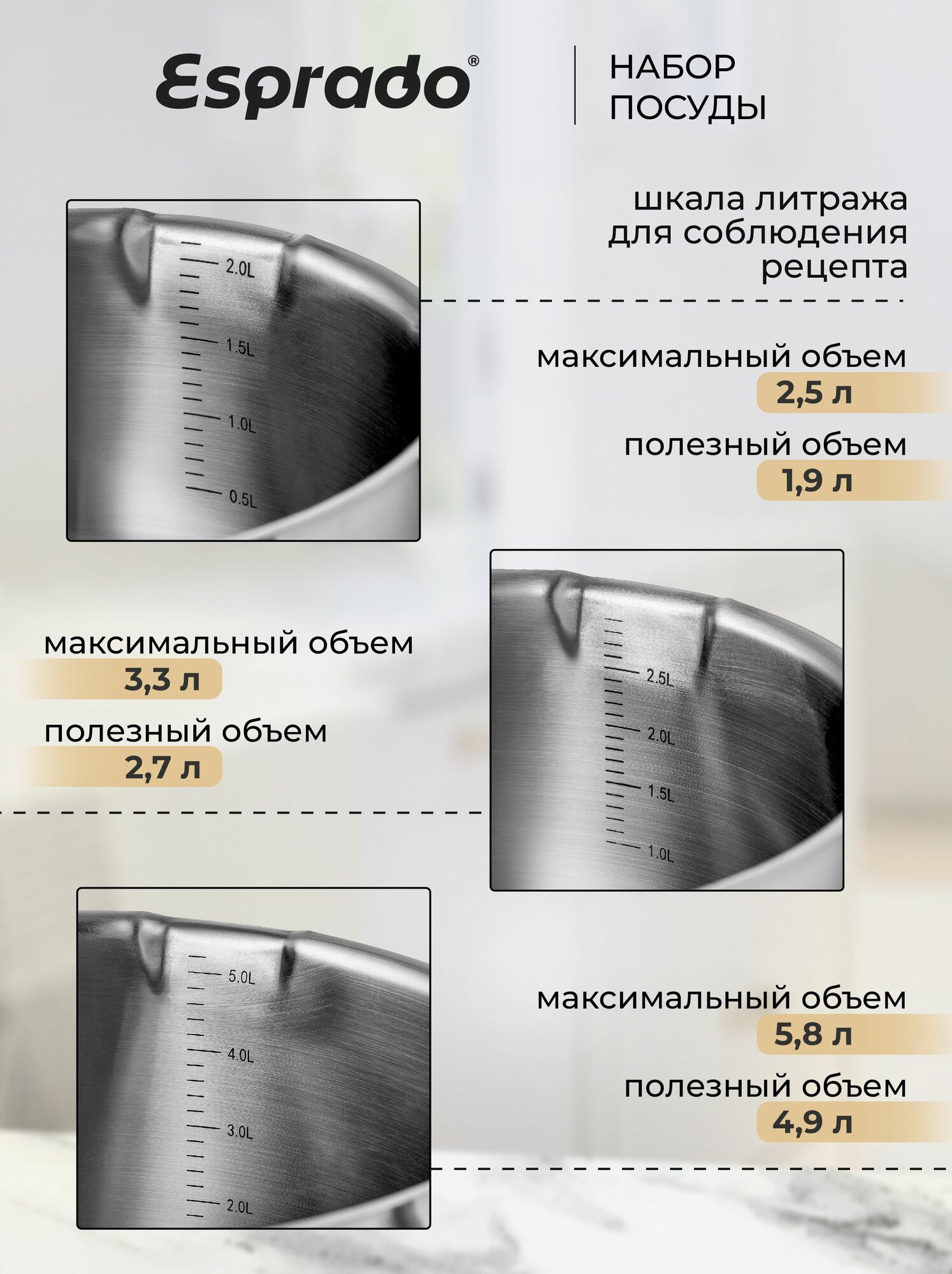 Набор кастрюль из нержавеющей стали Esprado 2,5 л, 3,3 л, 5,8 л интересное: