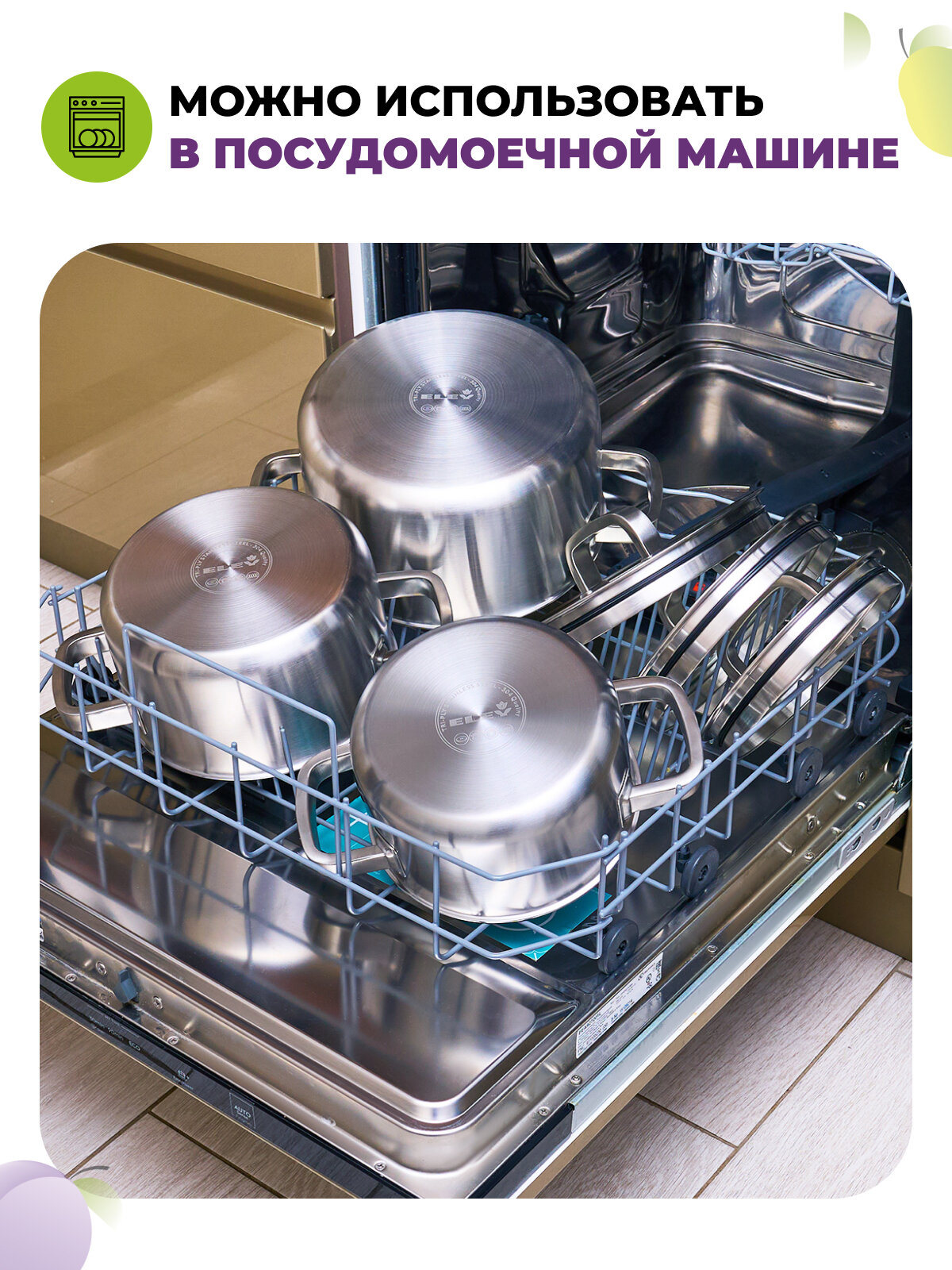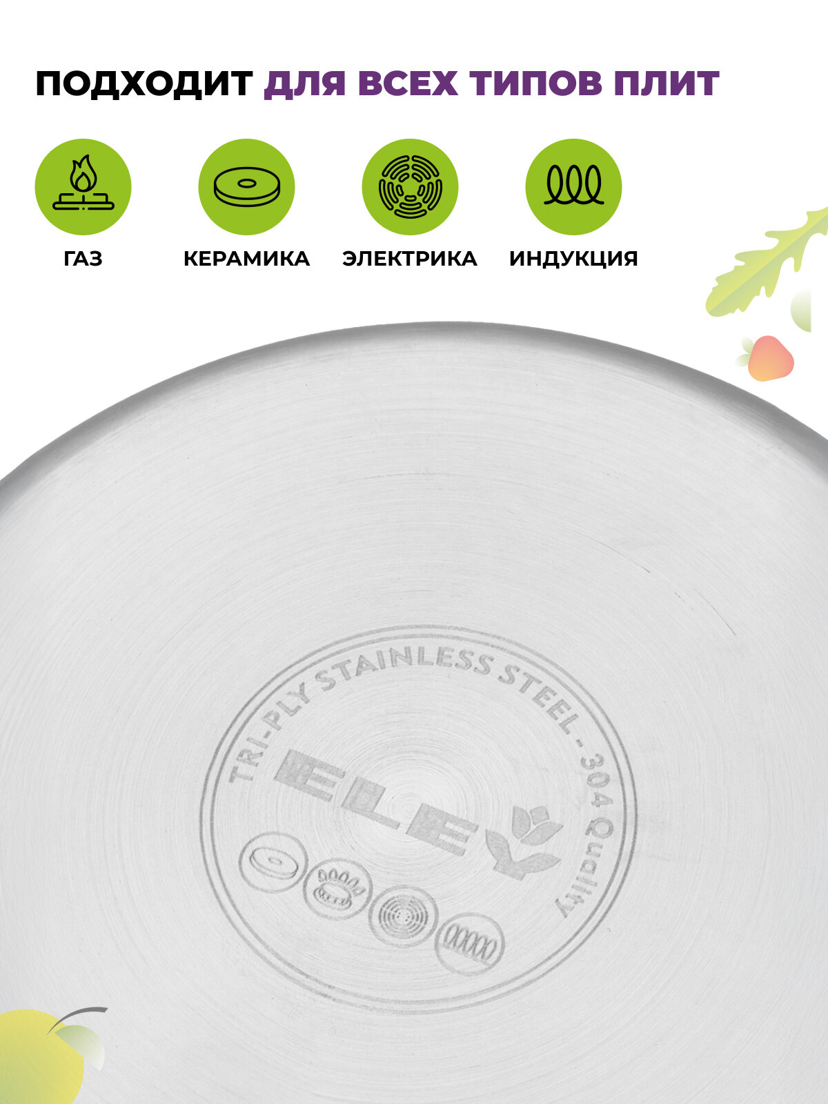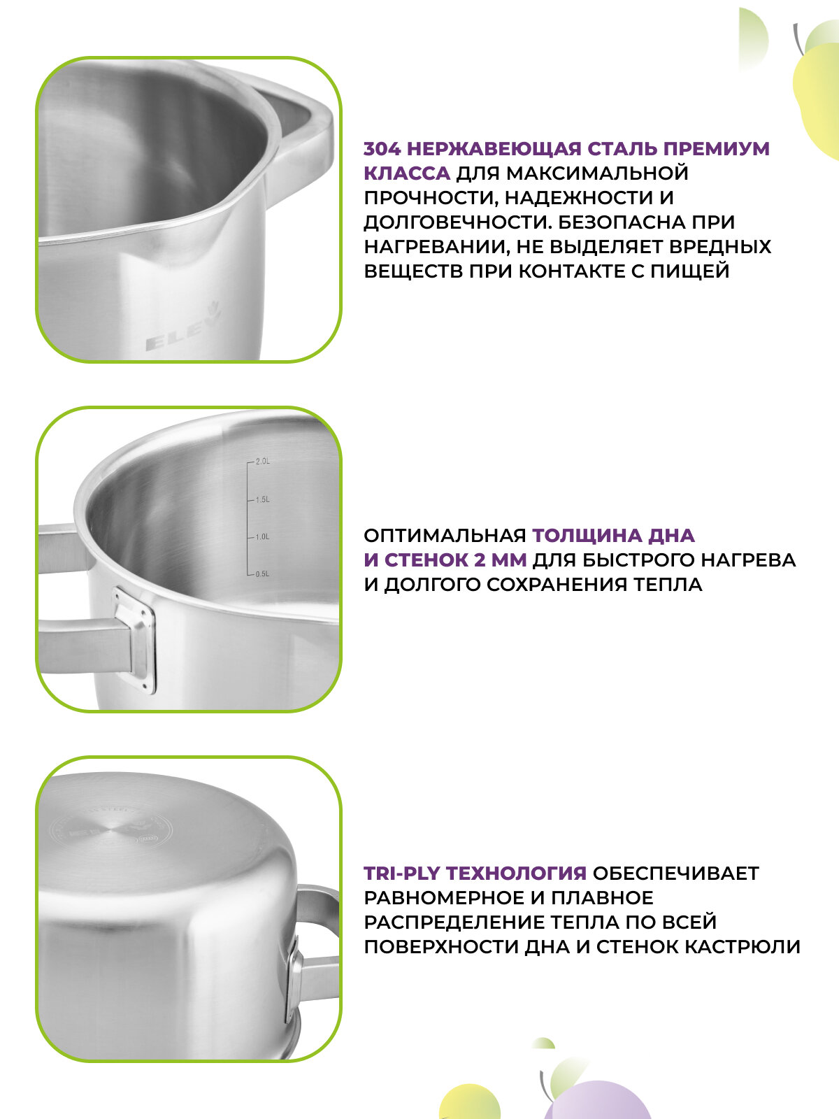 Набор кастрюль 2,5л 3,5л 6л из нержавеющей стали Eley с металлическими ручками интересное: