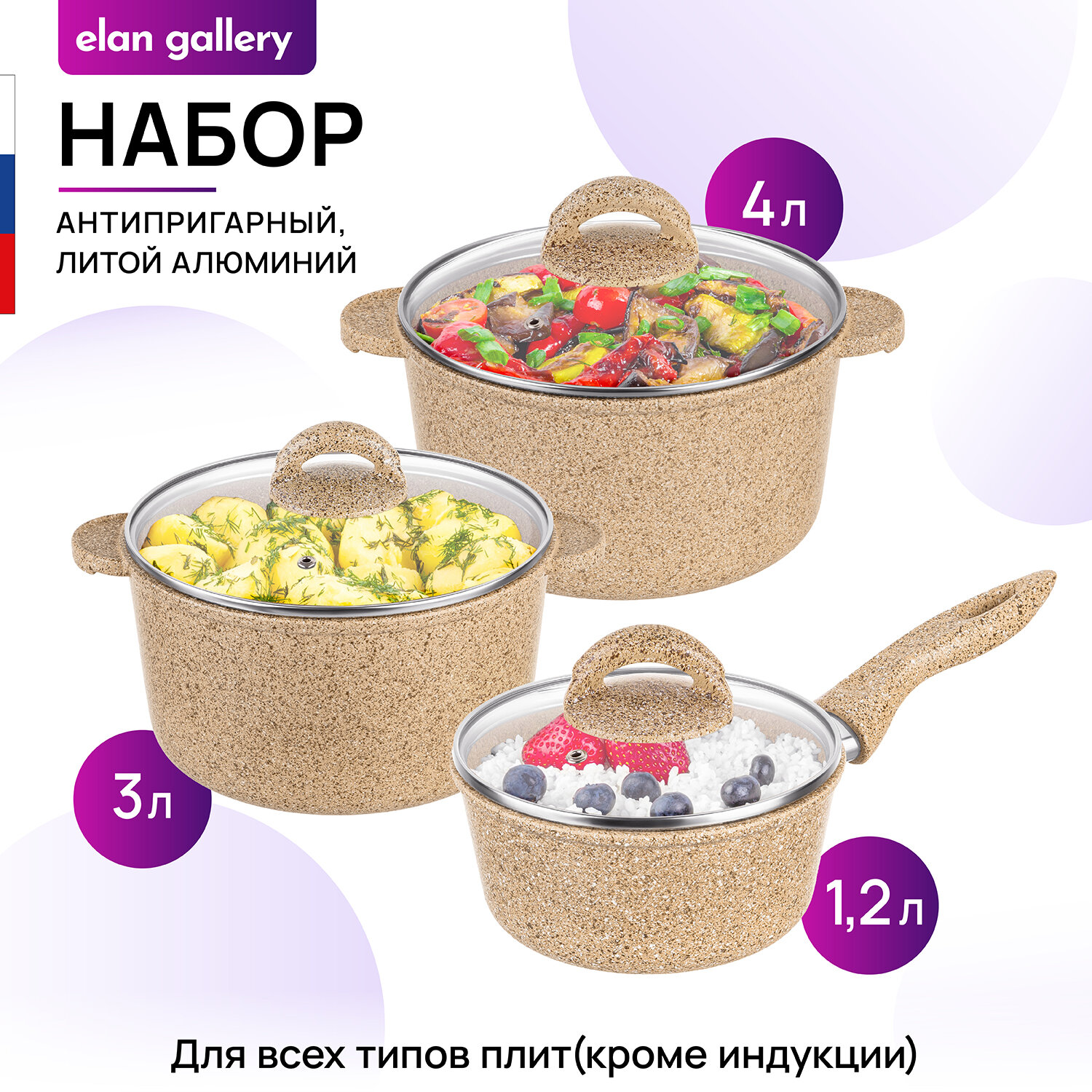 Купить Набор 6 пр. Elan Gallery гармония вкуса Медовый гранит Ковш 1,2 л + Кастрюля 3 л + Кастрюля 4 л, 3 крышки