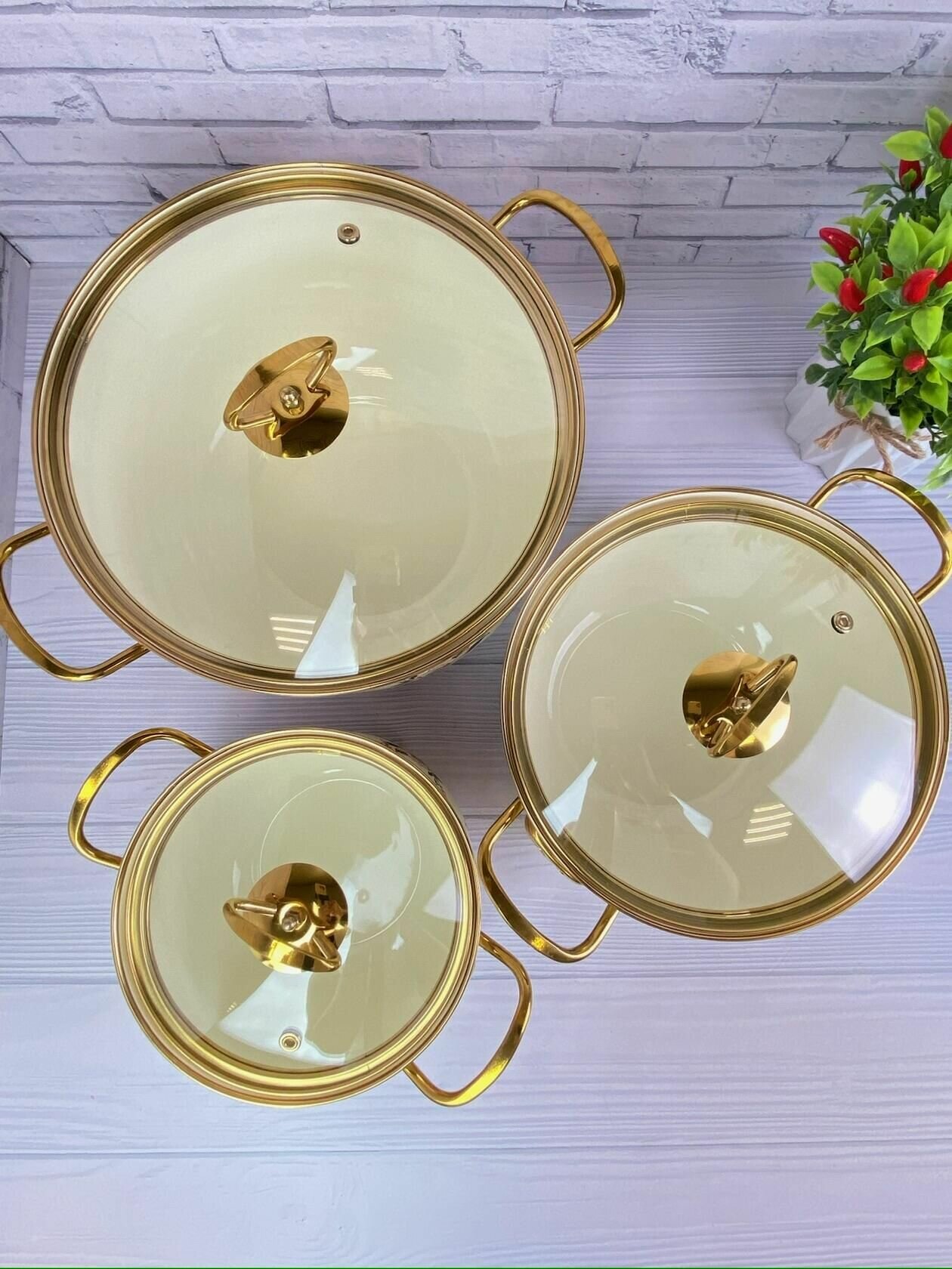 Набор кастрюль эмалированных 3 шт 2,4/4,4/7 л для всех видов плит, включая индукционные