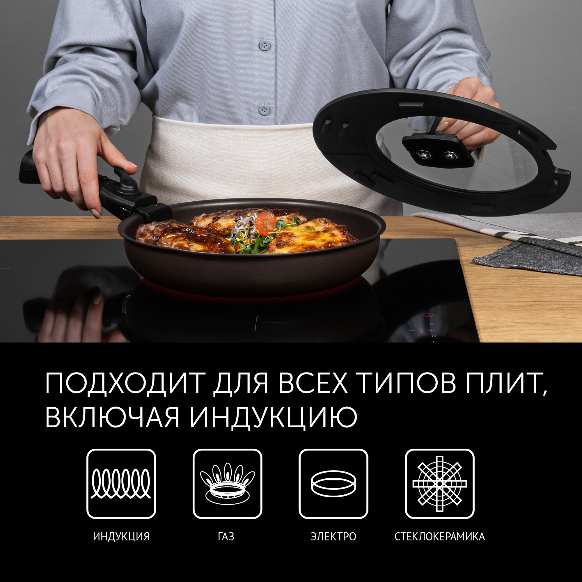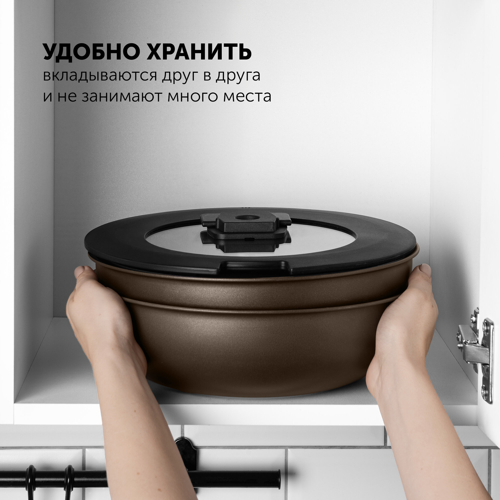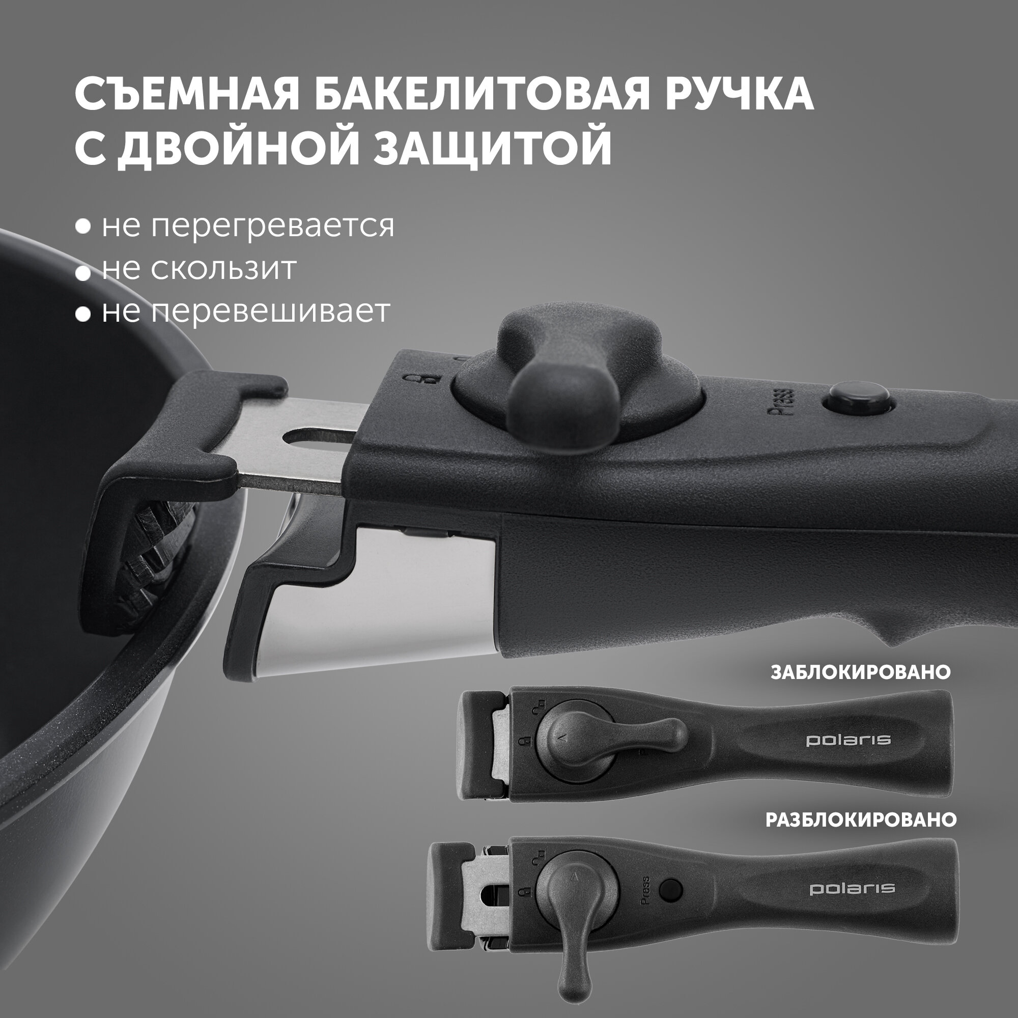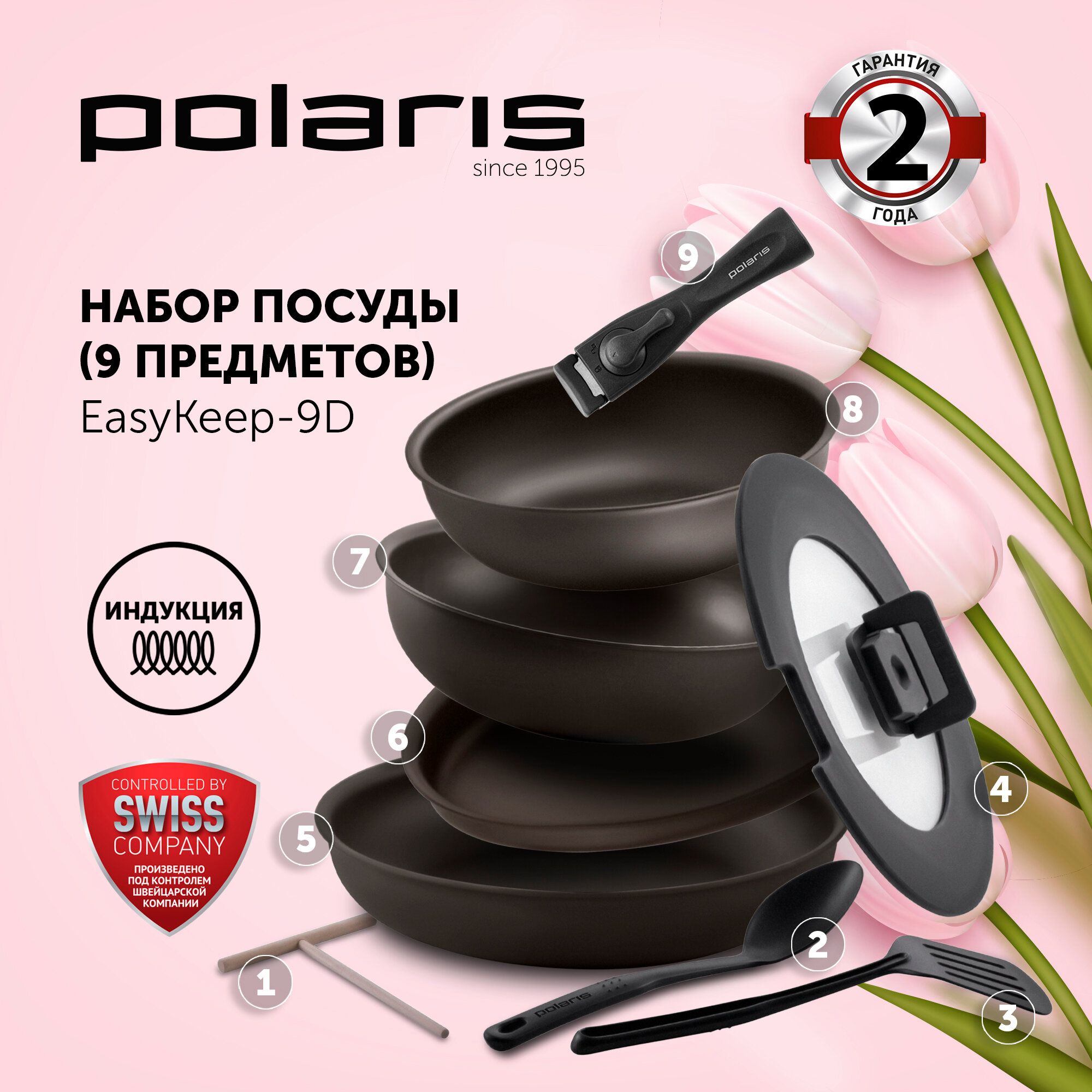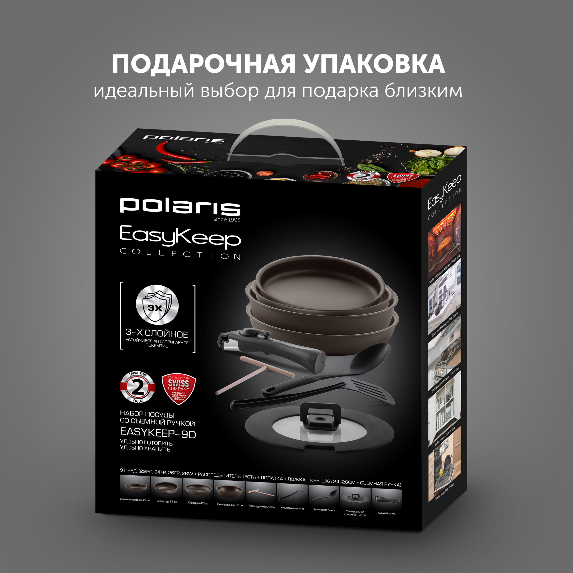 Набор сковород Polaris EasyKeep-9D со съемной ручкой, антипригарное покрытие, подходит для индукционной плиты интересное: