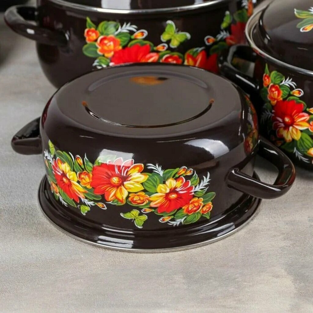 Набор эмалированной посуды Дуновение-1, объем 2 л; 3 л; 4 л, коричневый / набор кастрюль / набор кастрюль эмалированных интересное: