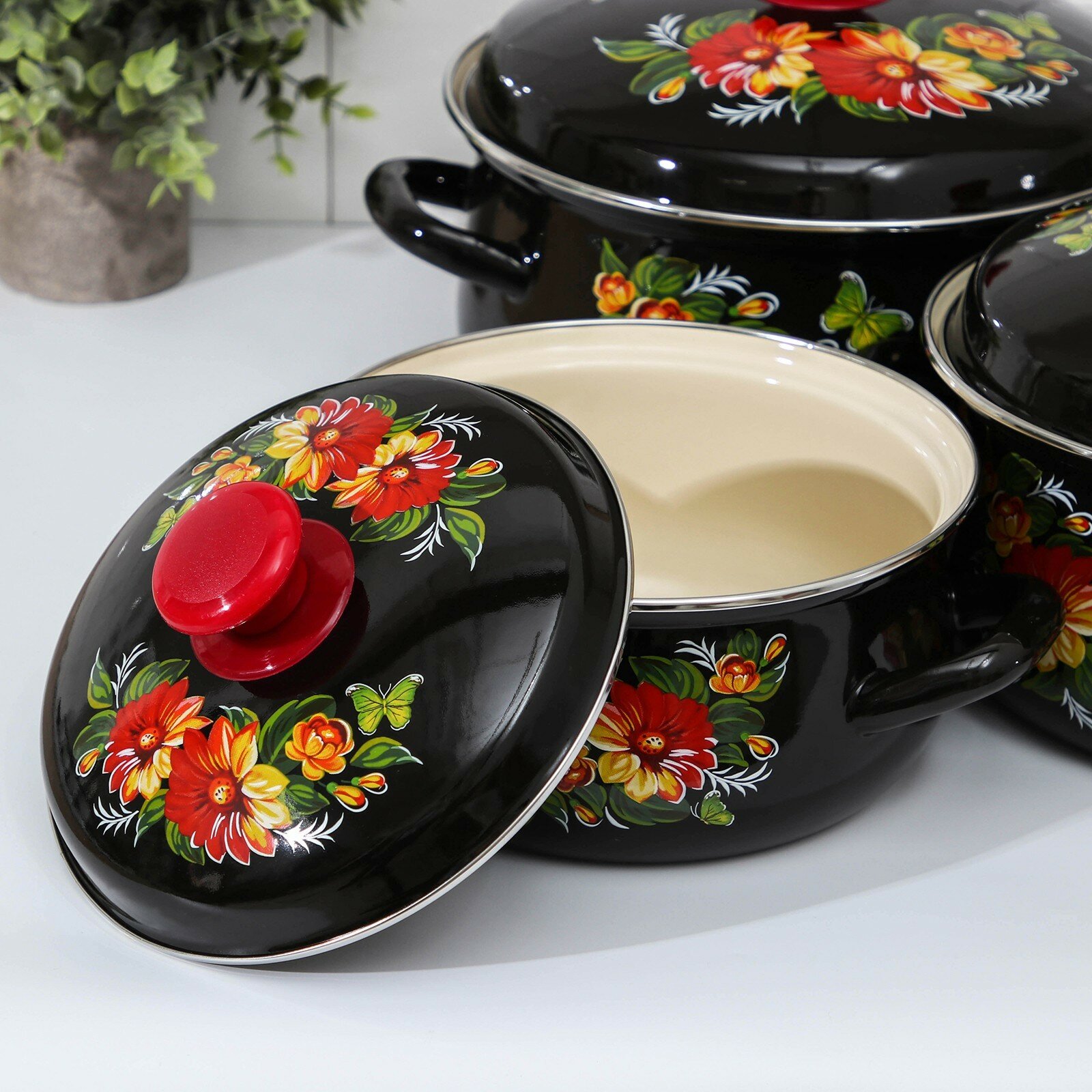 Набор кастрюль Жостово, кастрюли 2/4/5,5л, 1С408 черный